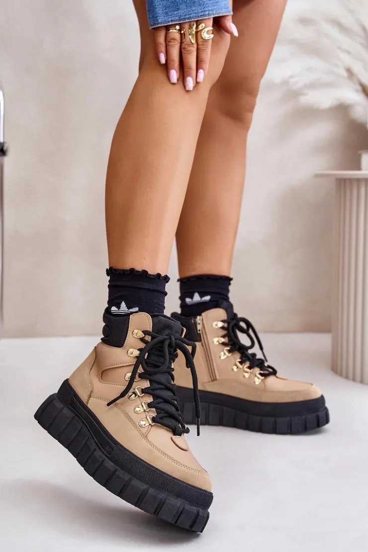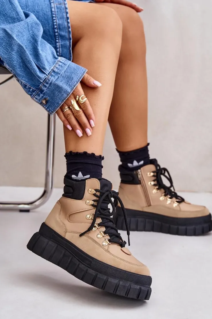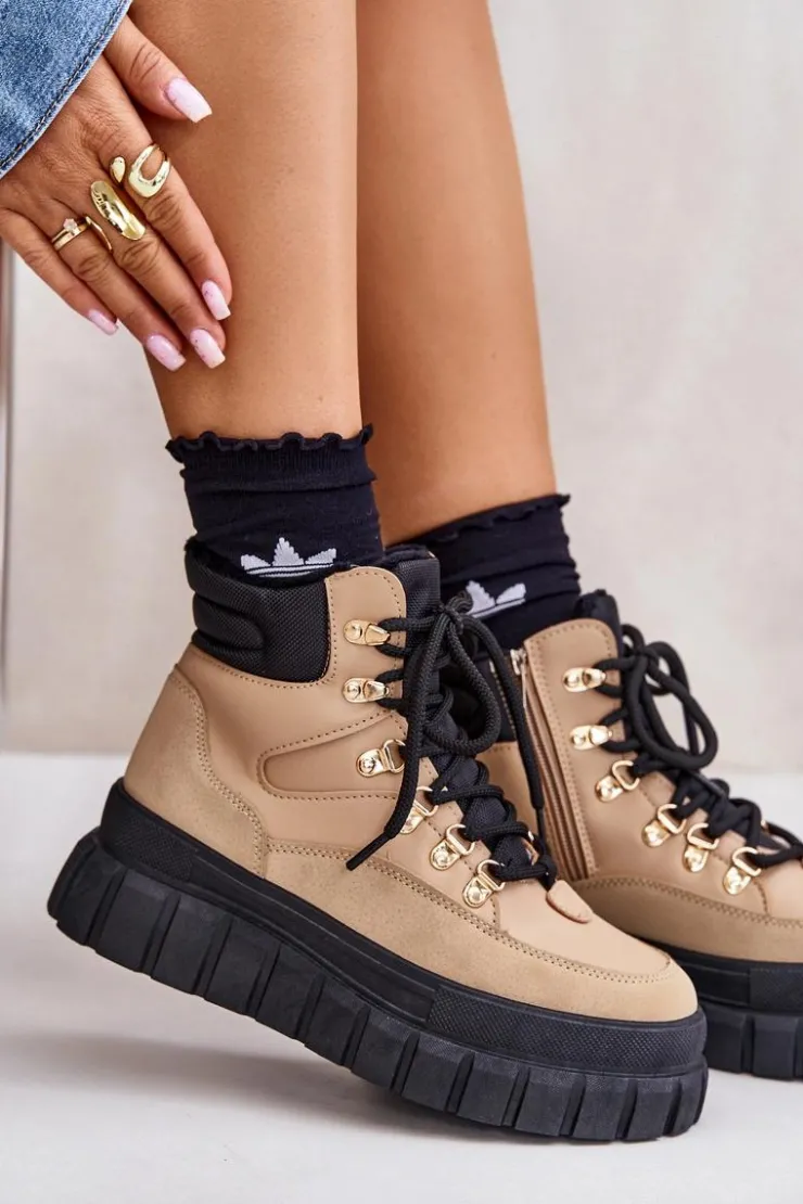 Evento Botki Ocieplane|Damskie Trapery*Damskie Ocieplane Botki Trapery Na Platformie Brązowe Jelenia Brązowy