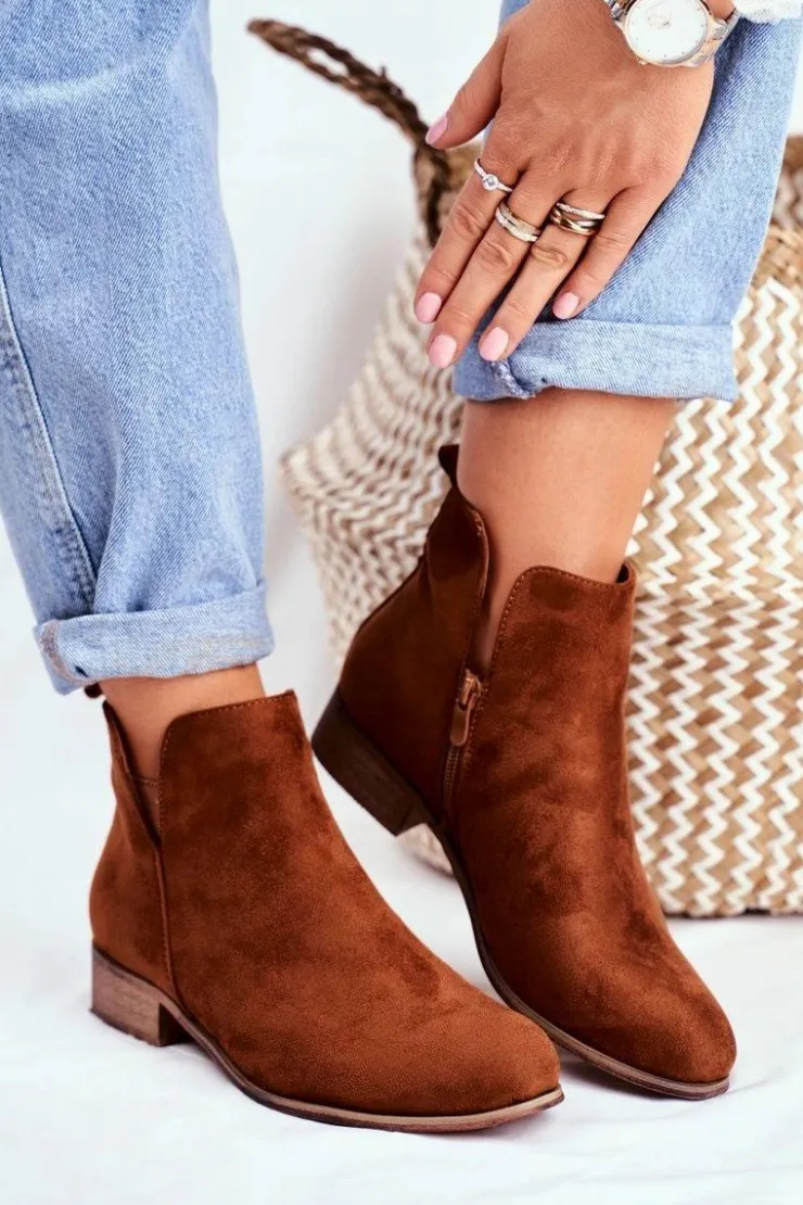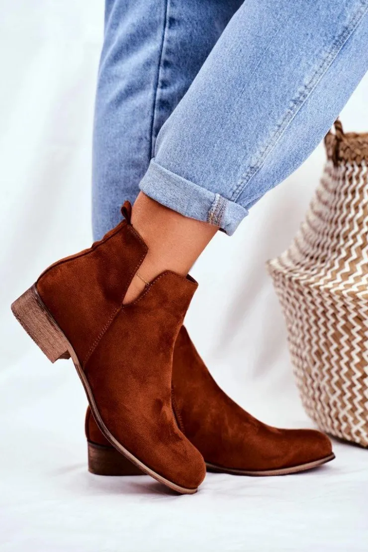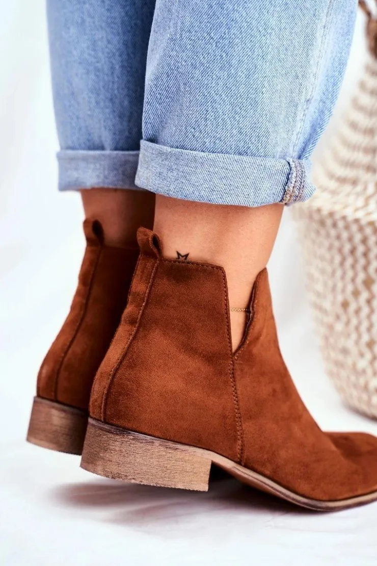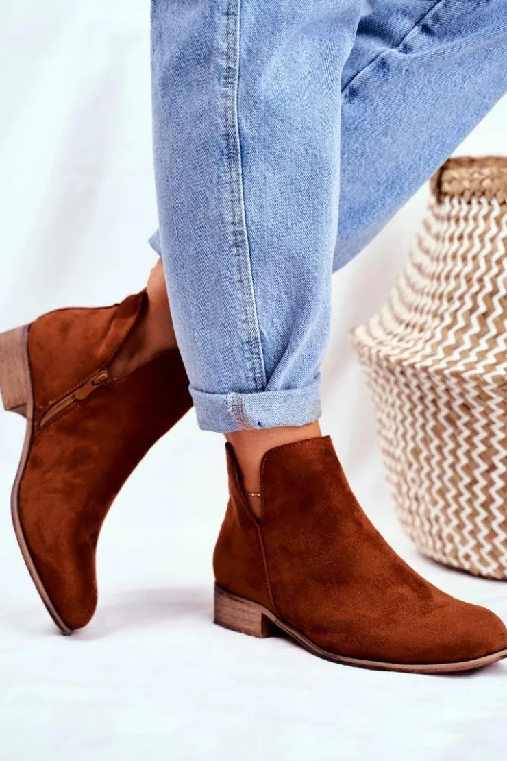Evento Botki Wiosenne|Brązowe I Beżowe Botki*Botki Damskie Płaski Obcas Wiosenne Camel Viva