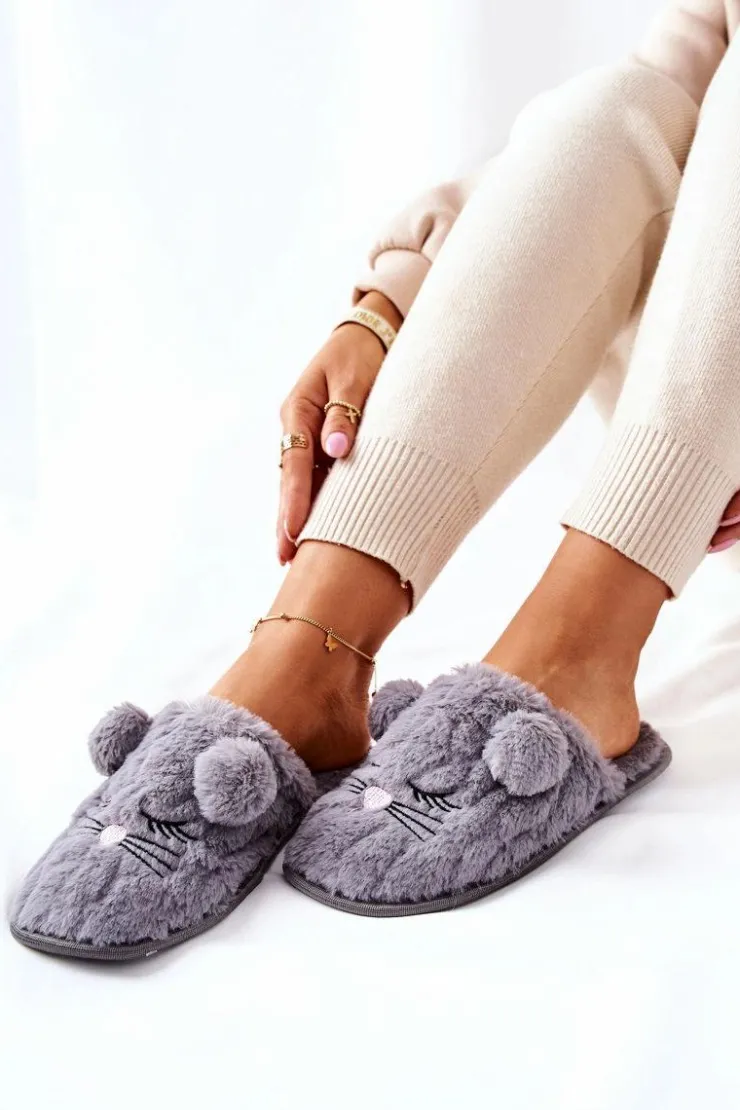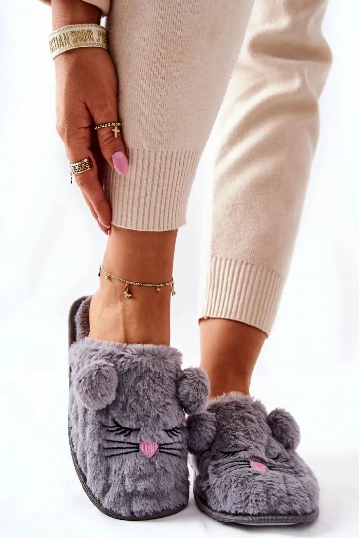 Wspaniałe papcie na chłodne, zimowe wieczory. Wykonane z delikatnego i przyjemnego w dotyku materiału. Na przodzie znajduje się uroczy, wyszyty nosek oraz przyszyte futerkowe uszy. Papcie posiadają ocieplaną wkładkę. Nie zwlekaj dłużej i zamów już teraz – koniecznie sprawdź całą kolekcję papci! Przy wyborze rozmiaru prosimy sugerować się tabelą rozmiarów.