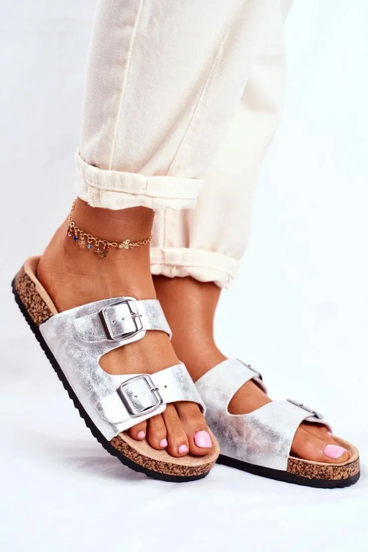 Evento Klapki Korkowe|Klapki Damskie Klasyczne*Damskie Klapki Na Korku Z Klamrami Srebrne Vivio
