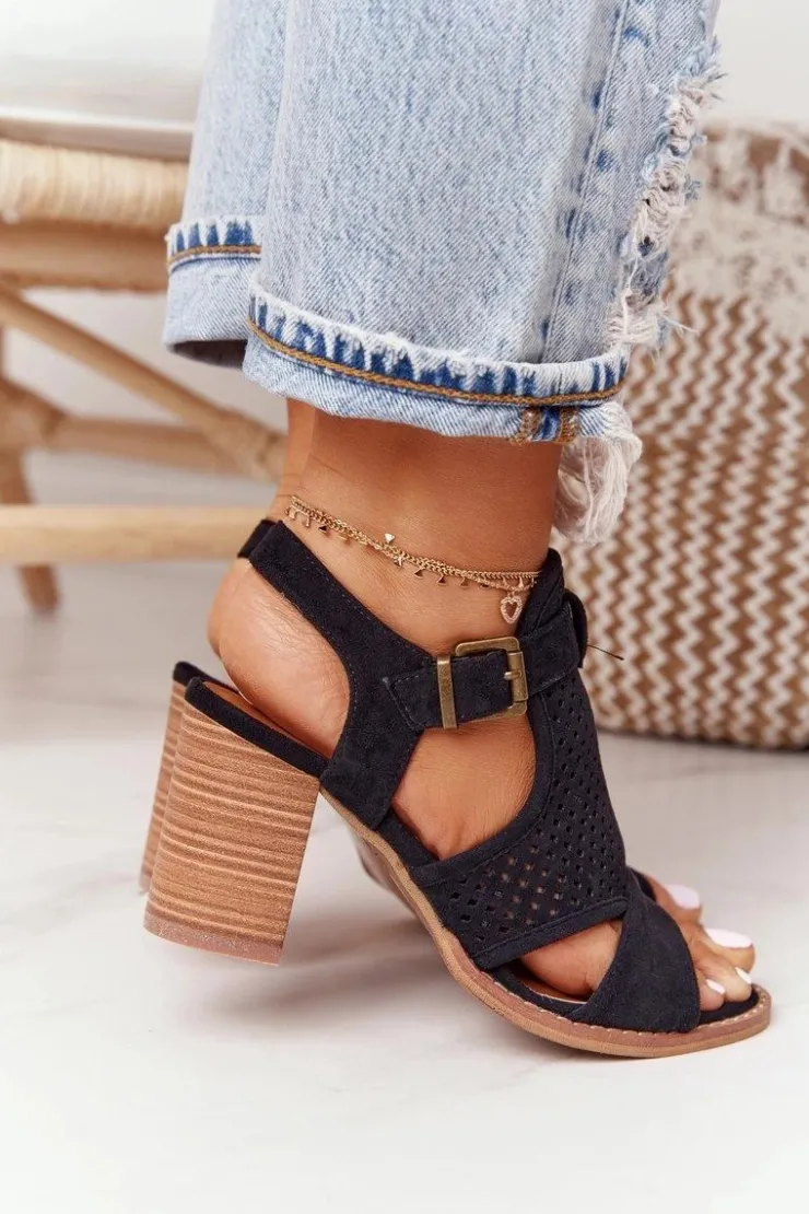 Piękne i wygodne sandały na słupku. Buty wykonane są z wysokiej jakości eko skóry. O Twój komfort zadba miękka cholewka oraz wkładka ze skóry naturalnej. Modny kolor i drewniany słupek urozmaicą wszystkie Twoje stylizacje. Koniecznie sprawdź całą naszą kolekcję damskich sandałów! Przy wyborze rozmiaru prosimy kierować się tabelą rozmiarów.