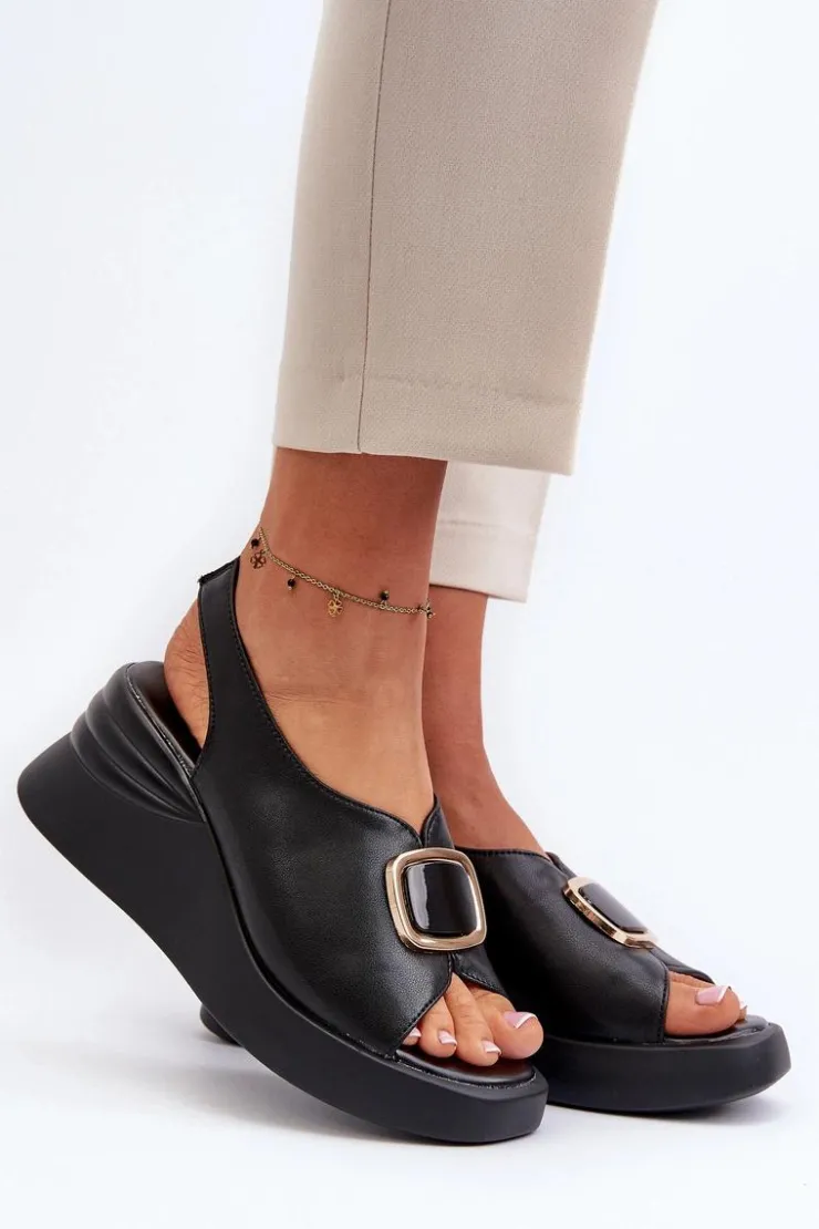 Modne sandały damskie na koturnie to połączenie stylu i wygody. Wykonane ze skóry naturalnej, prezentują elegancki wygląd, który doskonale komponuje się z różnymi letnimi stylizacjami. Z tyłu znajduje się gumka, która zapewnia lepsze dopasowanie do stopy i dodatkowy komfort podczas noszenia. To idealny wybór dla kobiet ceniących zarówno modny design, jak i wygodę. Przy wyborze rozmiaru prosimy sugerować się tabelą rozmiarów.