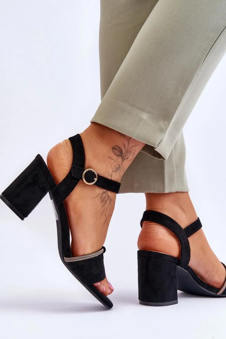Evento Sandały Na Obcasie*Damskie Zamszowe Sandały Na Niskim Słupku Czarne Loredo