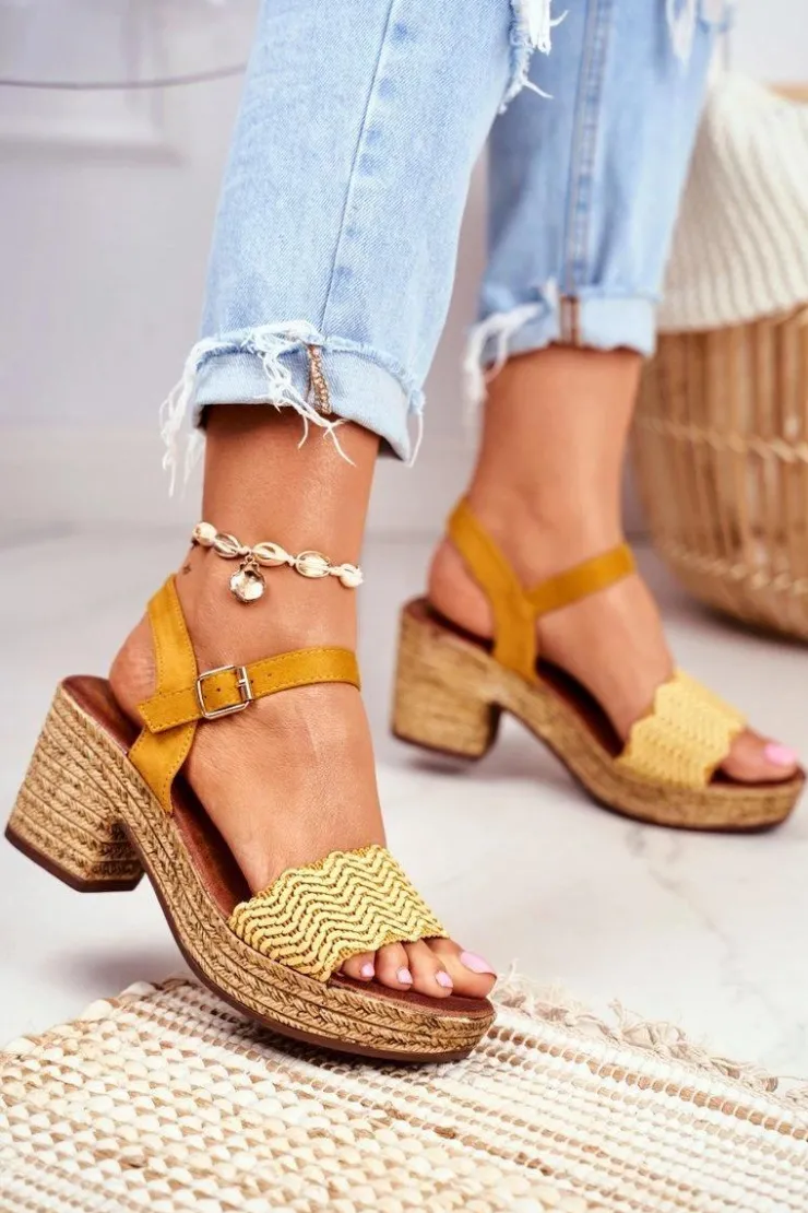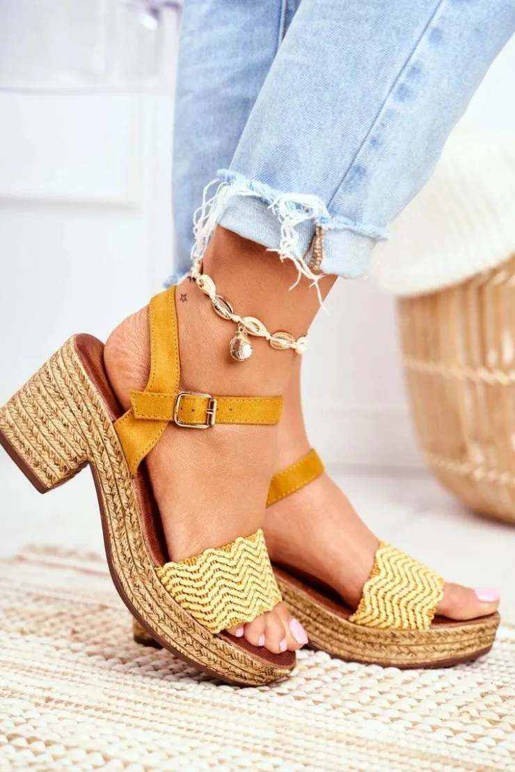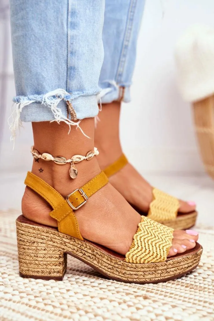 Evento Sandały Na Obcasie*Sandały Na Plecionej Platformie Żółte Fobi