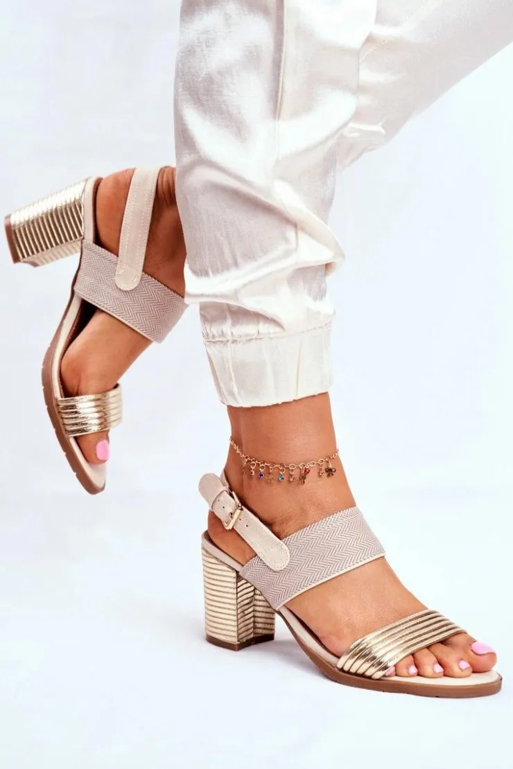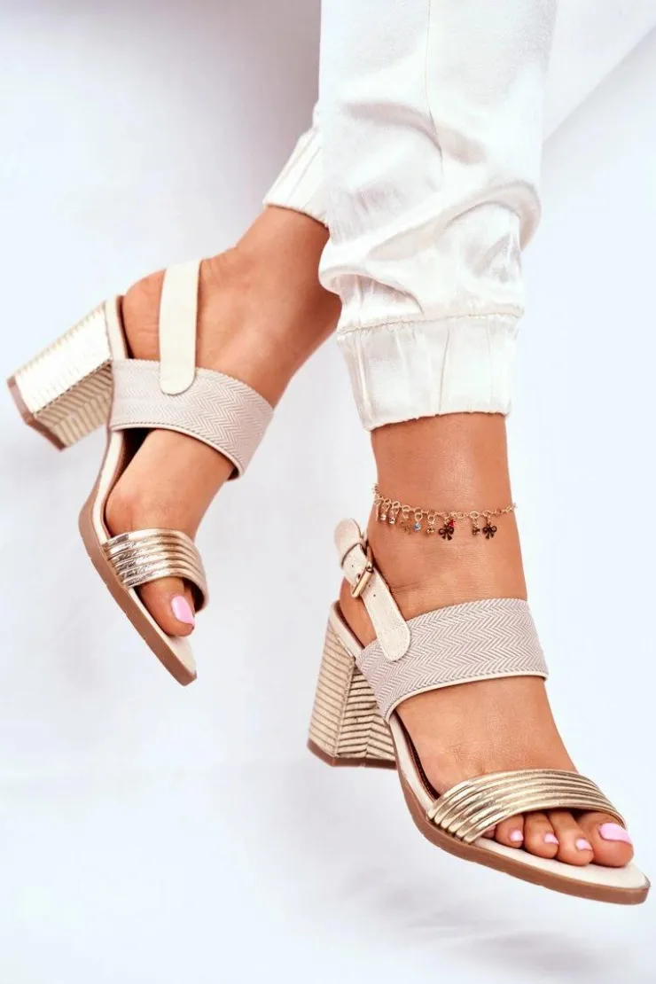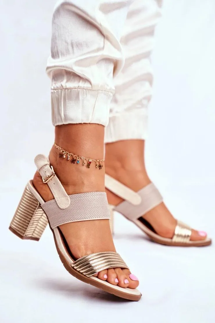 Evento Sandały Na Obcasie*Sandały Na Słupku Beżowo-Złote Emmy
