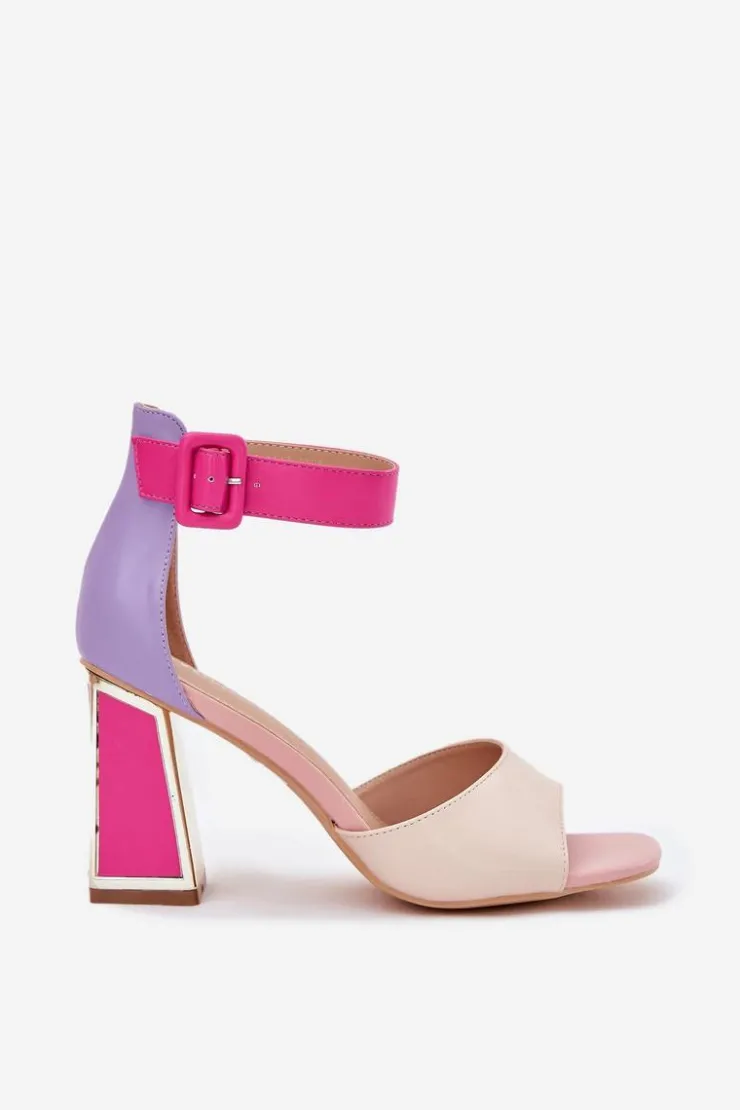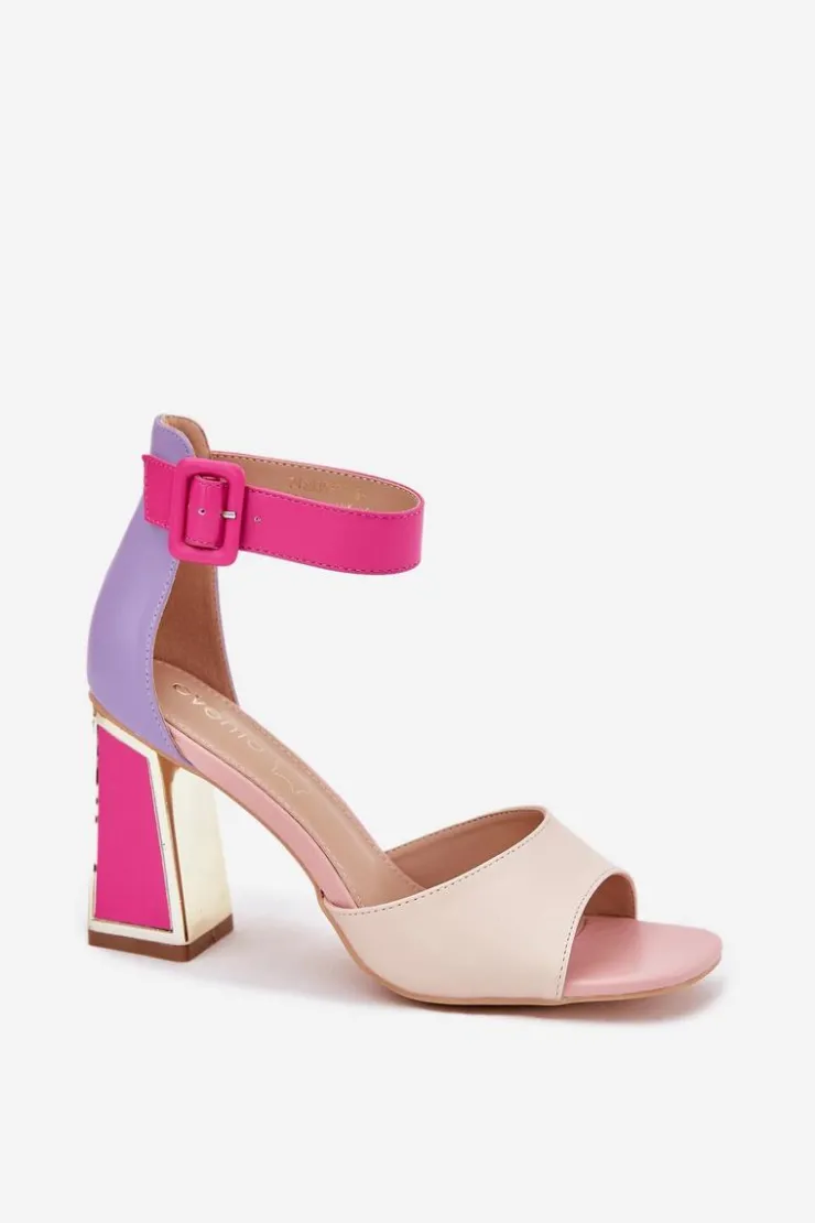 Evento Sandały Na Obcasie|Sandały Na Słupku*Eleganckie Sandały Damskie Na Słupku Beżowo-Różowe Rosazara