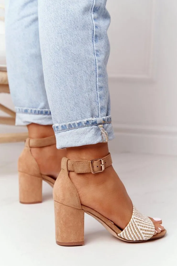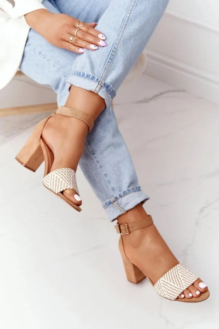 Piękne i wygodne sandały na słupku. Buty wykonane są z wysokiej jakości eko skóry, ozdobione modną plecionką. O Twój komfort zadba wkładka ze skóry naturalnej. Koniecznie sprawdź całą naszą kolekcję damskich sandałów! Przy wyborze rozmiaru prosimy kierować się tabelą rozmiarów.