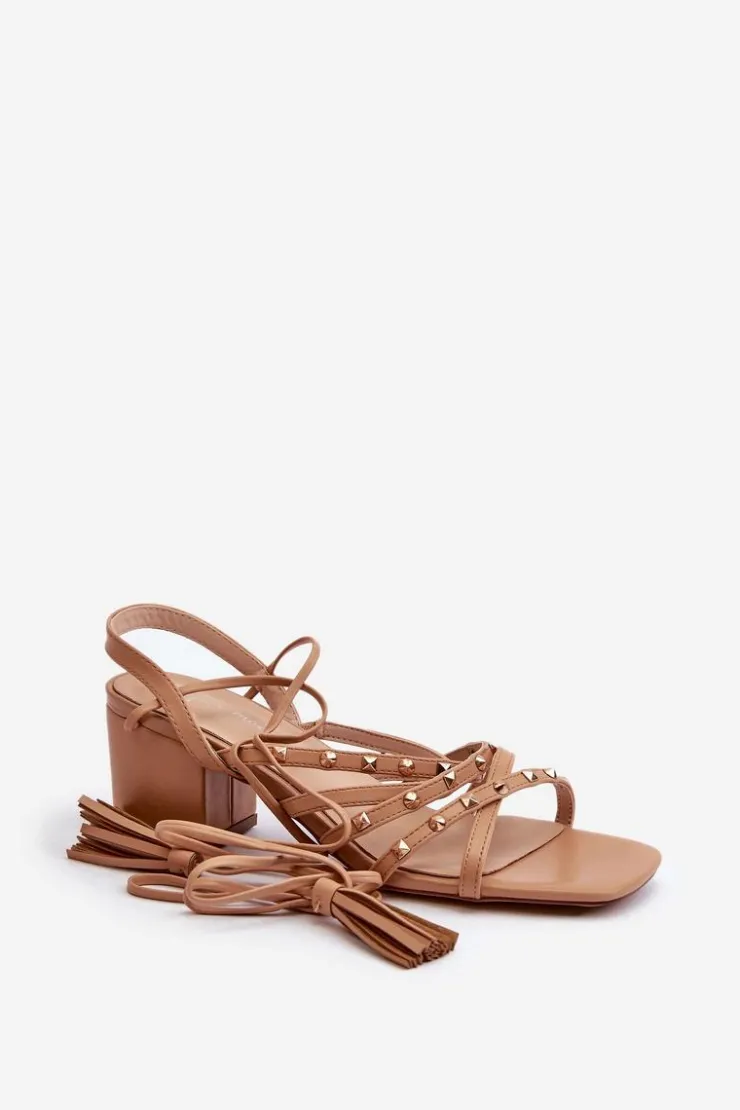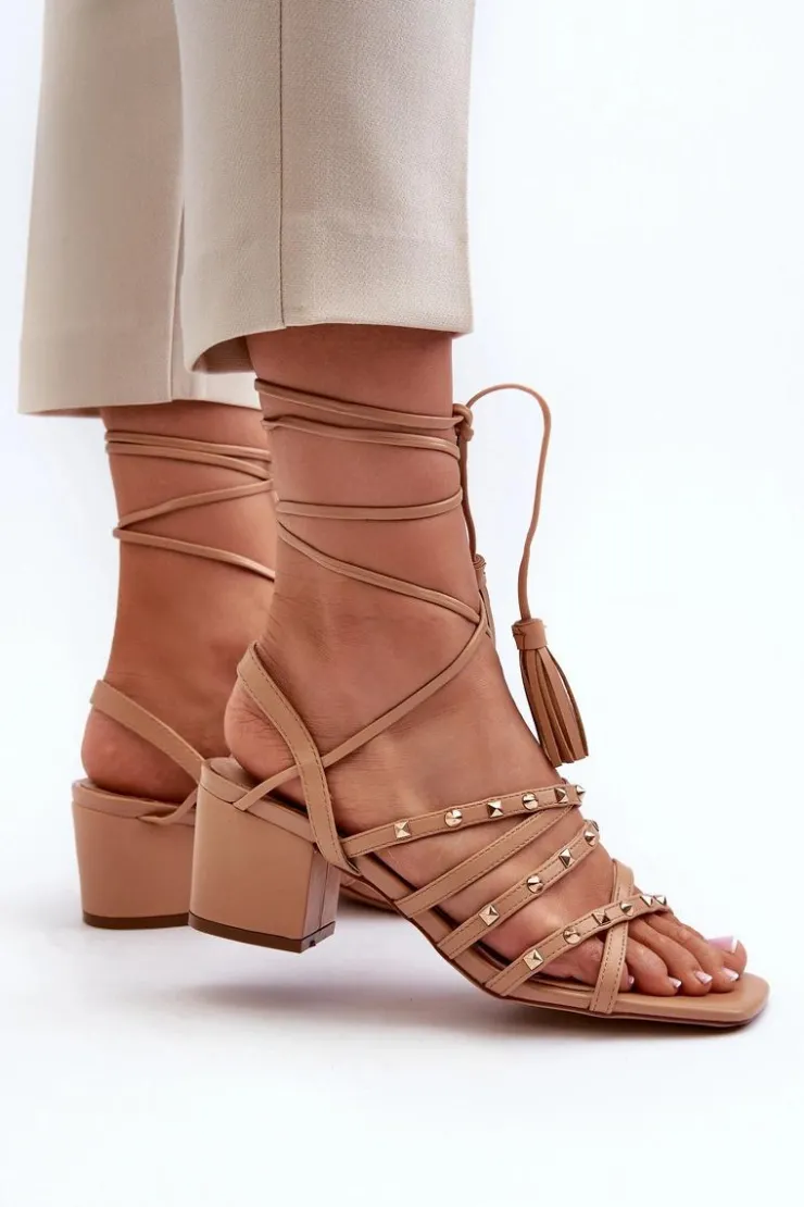 Stylowe sandały damskie wykonane z eko skóry. Z przodu przeplatające się paseczki dodatkowo ozdobione ćwiekami. Model jest wiązany. Doskonałe na letnie dni, te sandały będą idealnym uzupełnieniem Twojej letniej garderoby, dodając nutę stylu i oryginalności. Przy wyborze rozmiaru prosimy sugerować się tabelą rozmiarów.