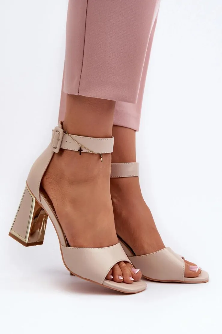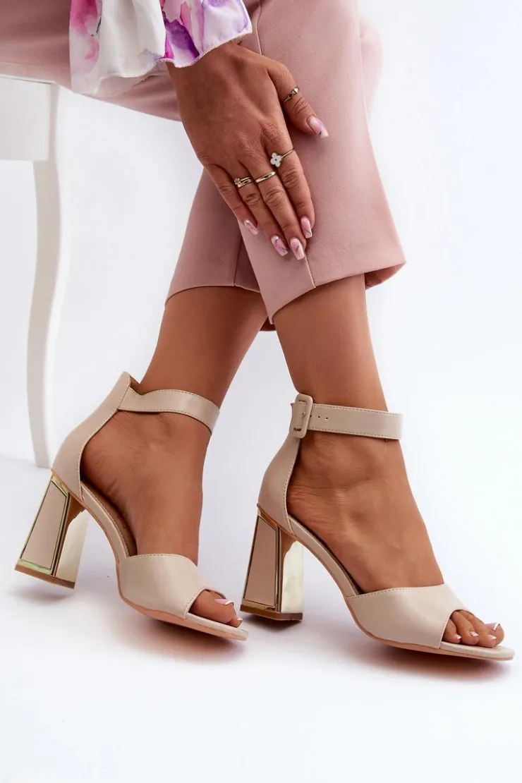 Eleganckie sandały damskie wykonane z eko skóry. Zapinane na regulowany pasek ze sprzączką gwarantują idealne dopasowanie do stopy, co zapewnia nie tylko wygodę, ale także pewność podczas poruszania się. Te sandały to doskonały wybór na wieczorne wyjścia, przyjęcia czy inne okazje, gdzie chcesz wyglądać szykownie i stylowo. Przy wyborze rozmiaru prosimy sugerować się tabelą rozmiarów.