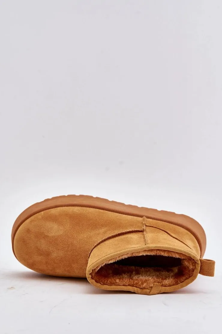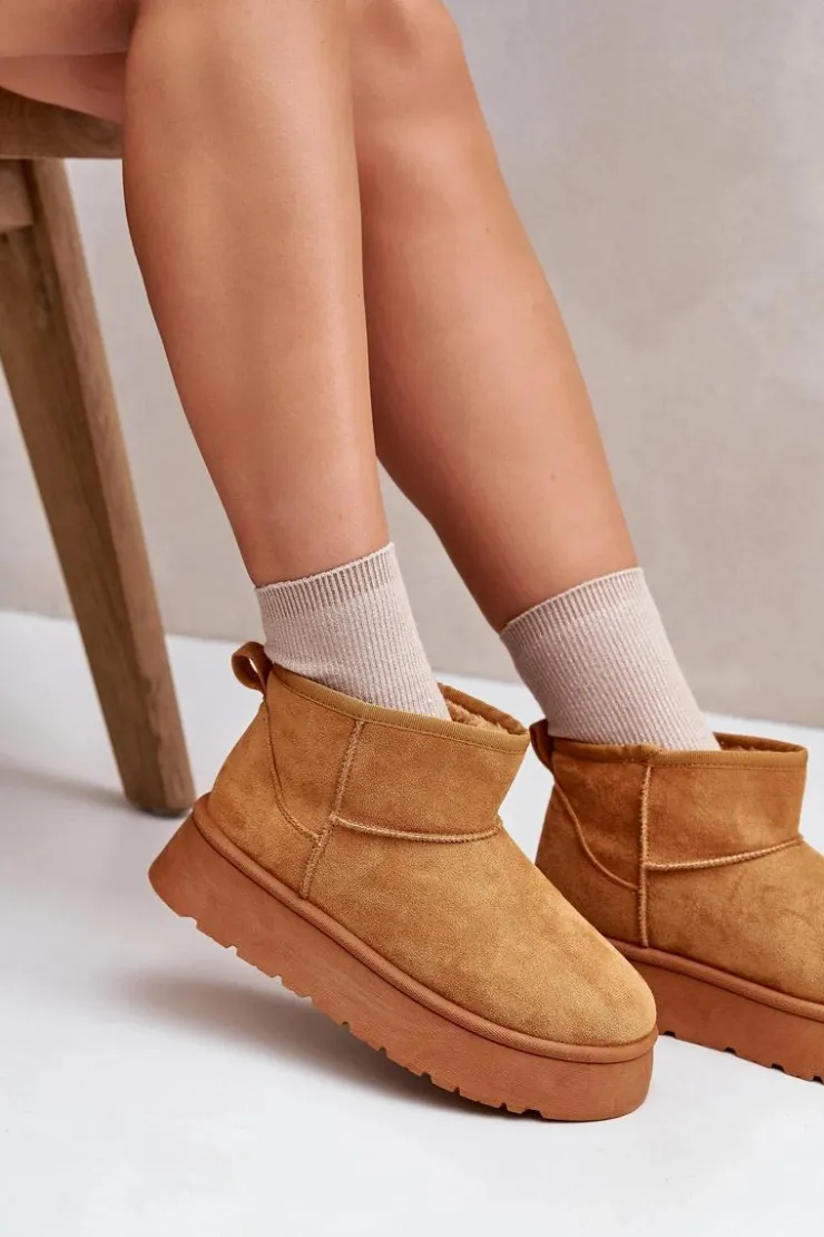 Śniegowce damskie wykonane z eko zamszu. Osadzone na platformie, która świetnie odizoluje od zimnego podłoża. Grube futerko w środku zapewni ciepło nawet w najmroźniejsze dni. Niezwykle modny fason tego obuwia pozwala zestawić je z różnorodnymi stylizacjami, dodając charakteru każdemu zimowemu outfitowi! Przy wyborze rozmiaru prosimy sugerować się tabelą rozmiarów.
