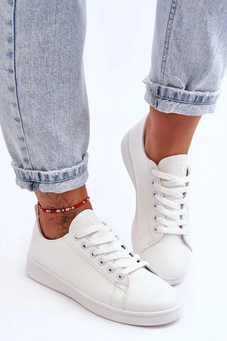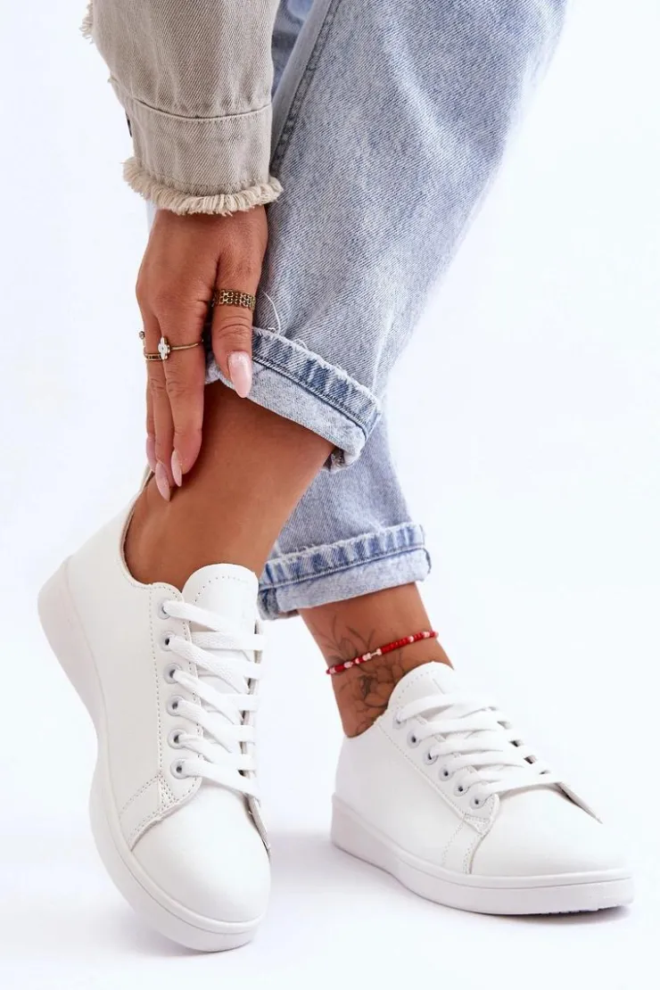 Klasyczne trampki damskie zostały wykonane z eko skóry z cholewką do kostki. Buty posiadają delikatną platformę. Ten ponadczasowy model powinien znaleźć się w Twojej szafie! Nosek jest zaokrąglony. Materiałowa wkładka zapewni komfort podczas użytkowania. Model ten jest klasycznie sznurowany. Przy wyborze rozmiaru prosimy sugerować się tabelą rozmiarów.