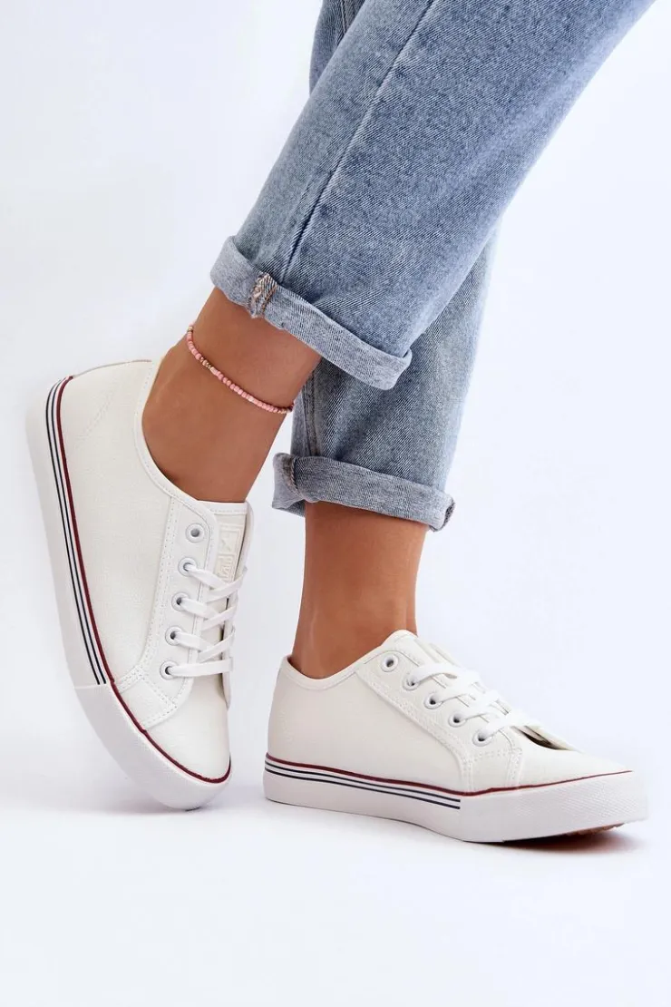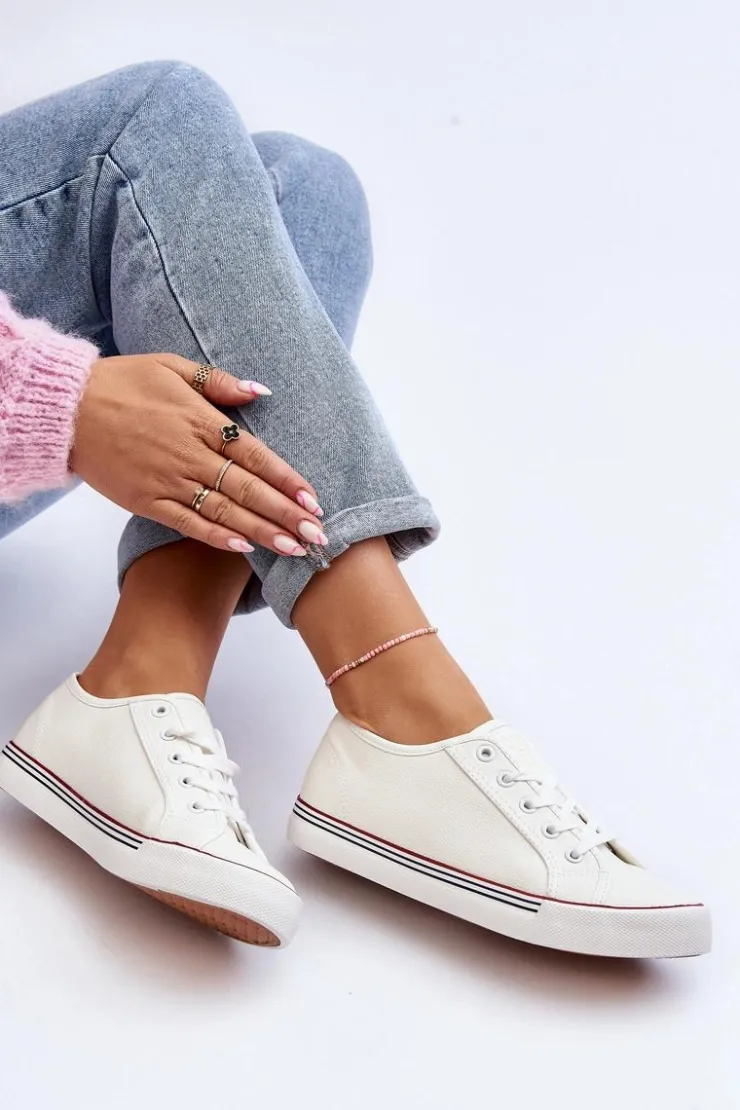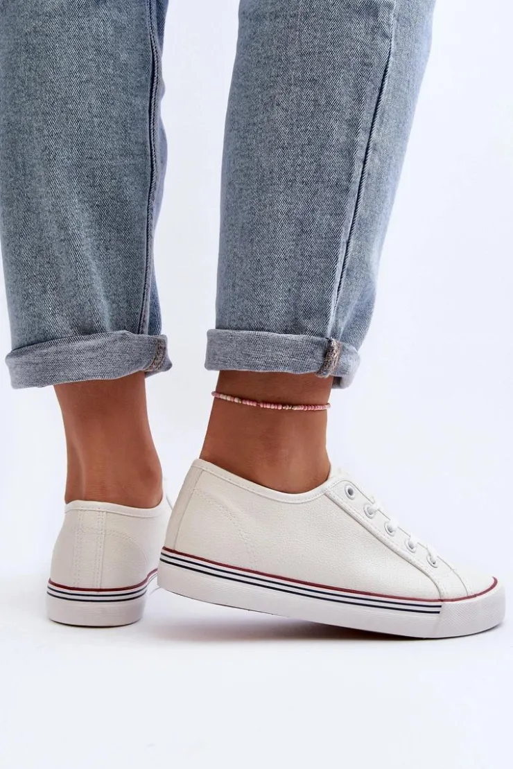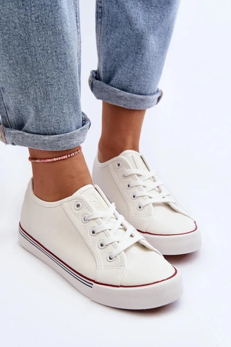 Trampki damskie wykonane z eko skóry. Cholewka do kostki. Osadzone na delikatnej platformie. Noski zaokrąglone. Klasyczne sznurowanie. Ten ponadczasowy model powinien znaleźć się w Twojej szafie! Przy wyborze rozmiaru prosimy sugerować się tabelą rozmiarów.