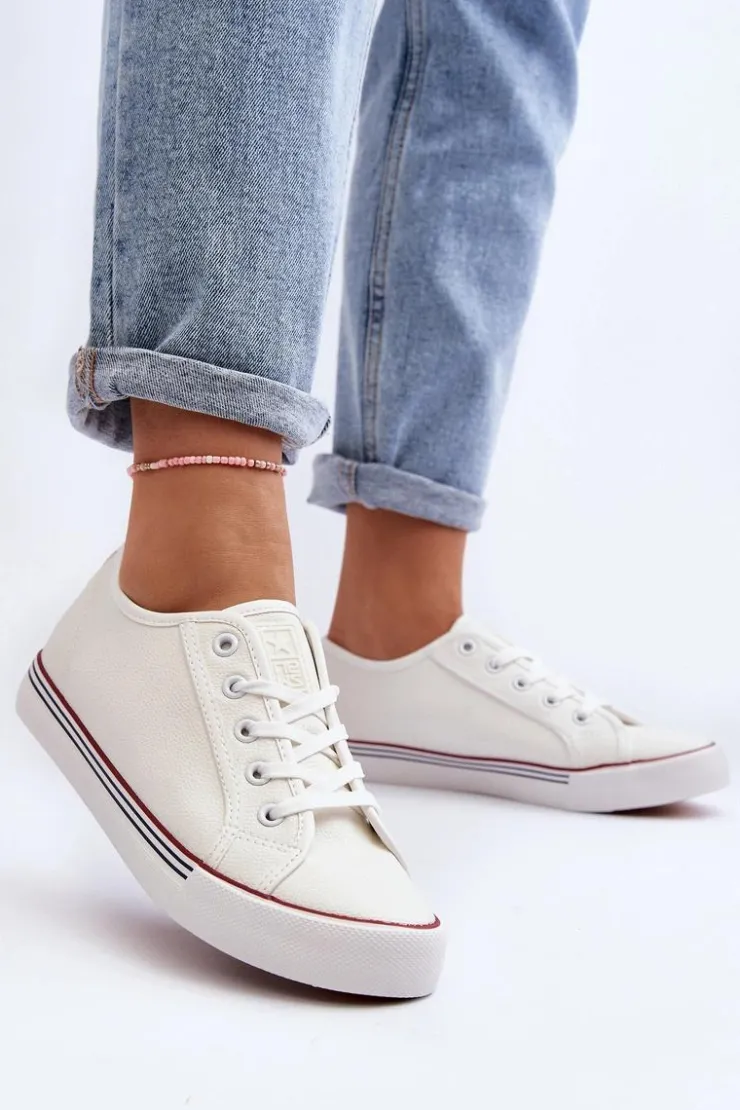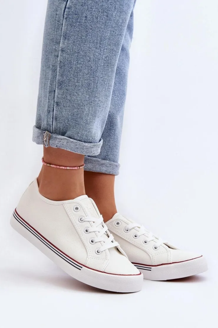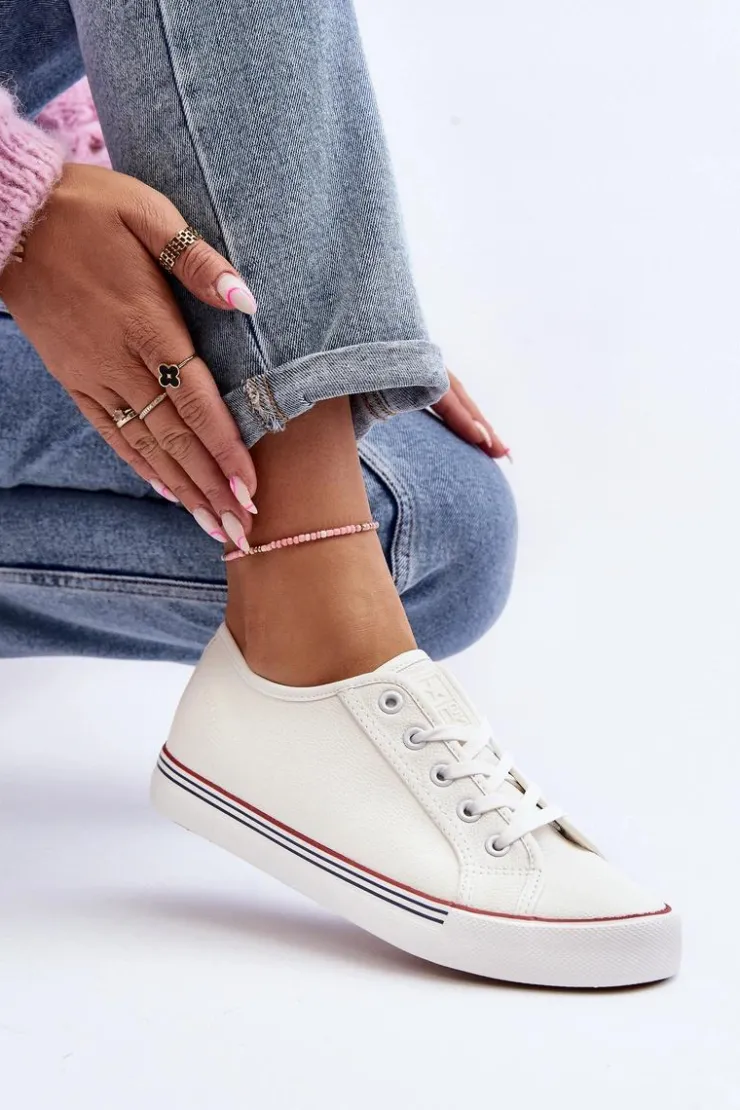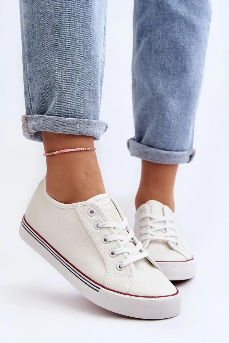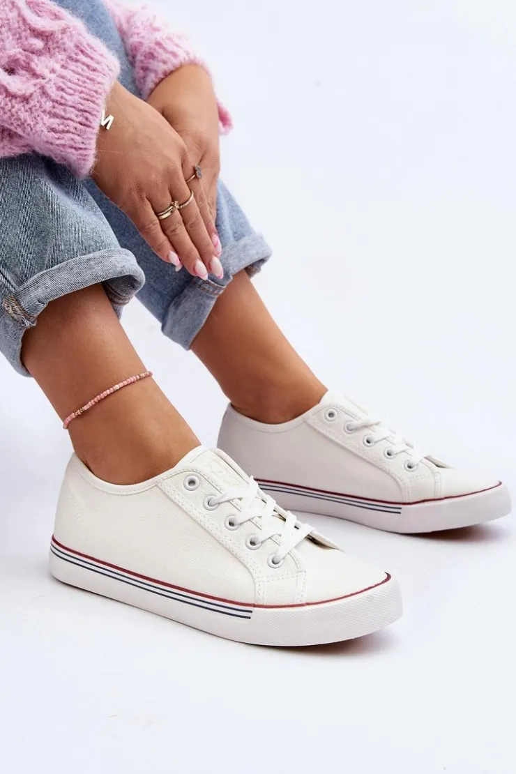 Trampki damskie wykonane z eko skóry. Cholewka do kostki. Osadzone na delikatnej platformie. Noski zaokrąglone. Klasyczne sznurowanie. Ten ponadczasowy model powinien znaleźć się w Twojej szafie! Przy wyborze rozmiaru prosimy sugerować się tabelą rozmiarów.