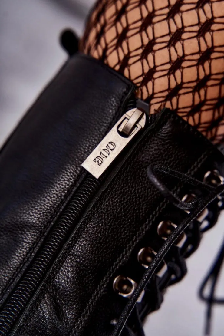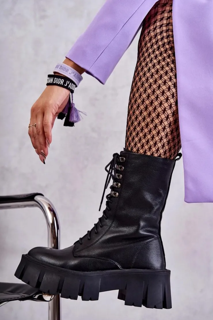 Świetne, wysokie botki damskie od marki GOE to MUST HAVE tego sezonu! Wykonane z naturalnej skóry z usztywnianym zapiętkiem. Model ten jest sznurowany oraz zapinany z boku cholewki na suwak. Buty zostały osadzone na płaskim obcasie i masywnej platformie. Niezwykle stabilny model. Posiadają ocieplenie w postaci koca obuwniczego. Wkładka wykonana z eko skóry jest miękka i wygodna. Przy wyborze rozmiaru prosimy sugerować się tabelą rozmiarów.