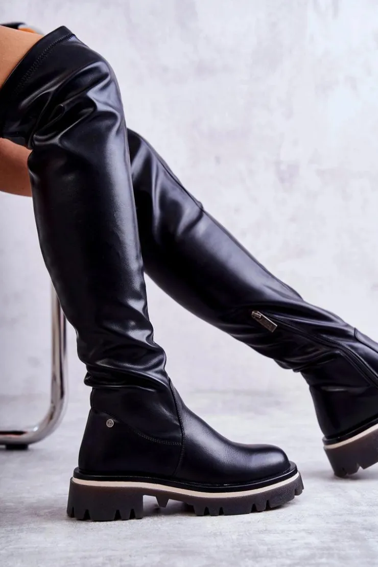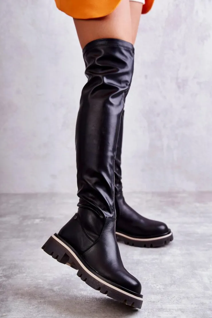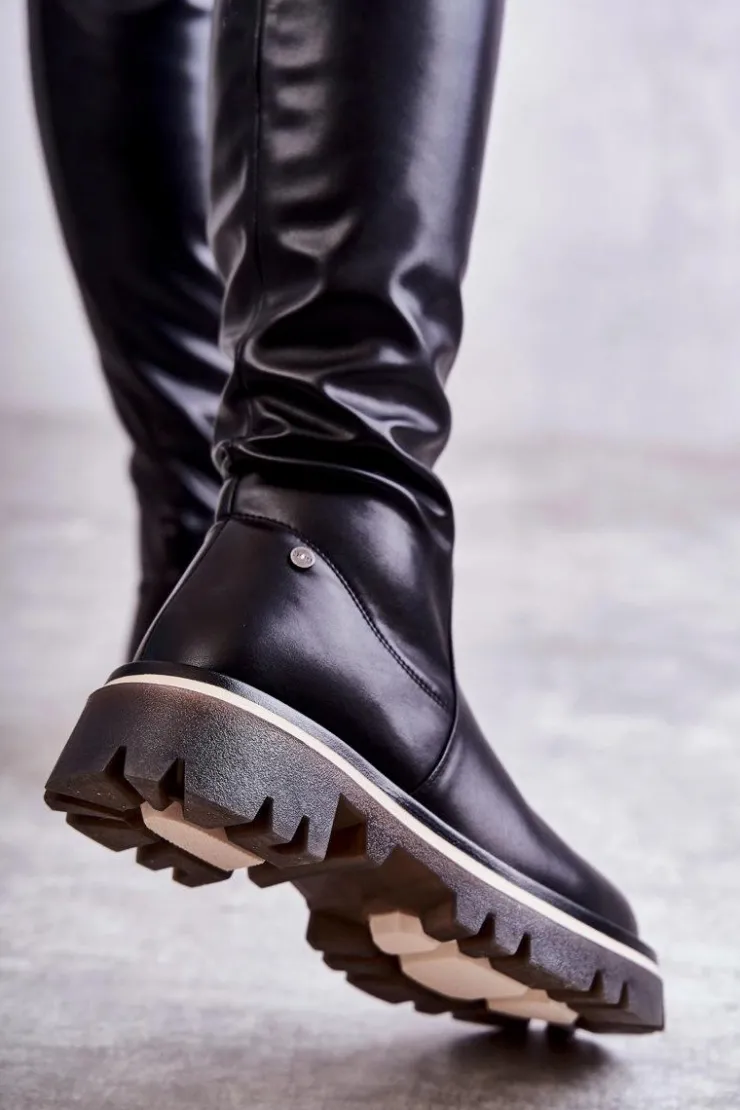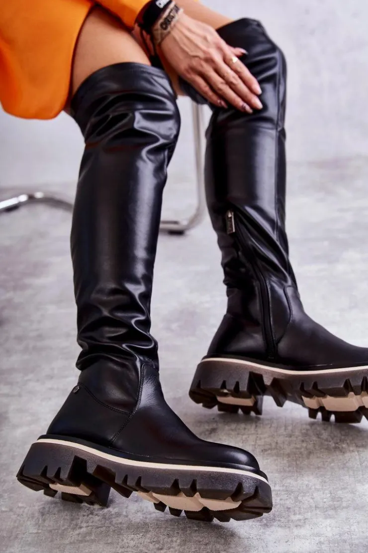 Kozaki damskie od marki GOE zostały wykonane z połączenia skóry ekologicznej i naturalnej. Model wsuwany, z dodatkowym suwakiem z boku cholewki. Buty te zostały osadzone na platformie i płaskim obcasie. Dodatkowo podeszwa jest antypoślizgowa. Kozaki zostały ocieplone miłym w dotyku kocem obuwniczym. Zapiętek jest usztywniany. Ten model to HIT tego sezonu! Przy wyborze rozmiaru prosimy sugerować się tabelą rozmiarów.