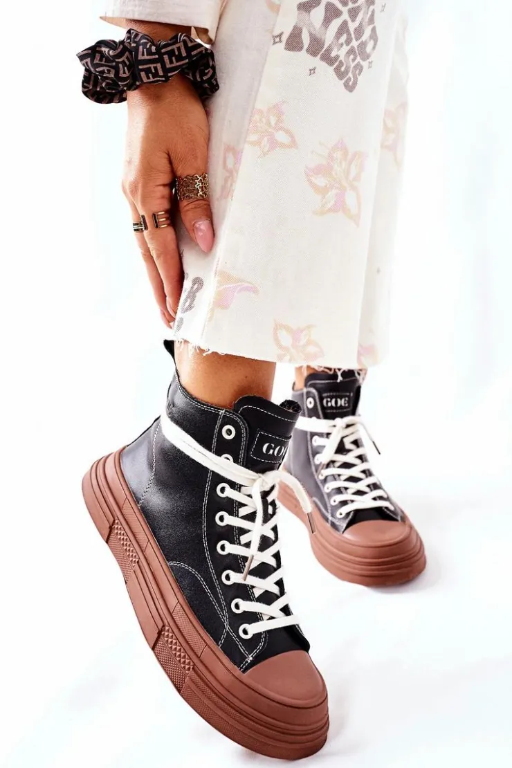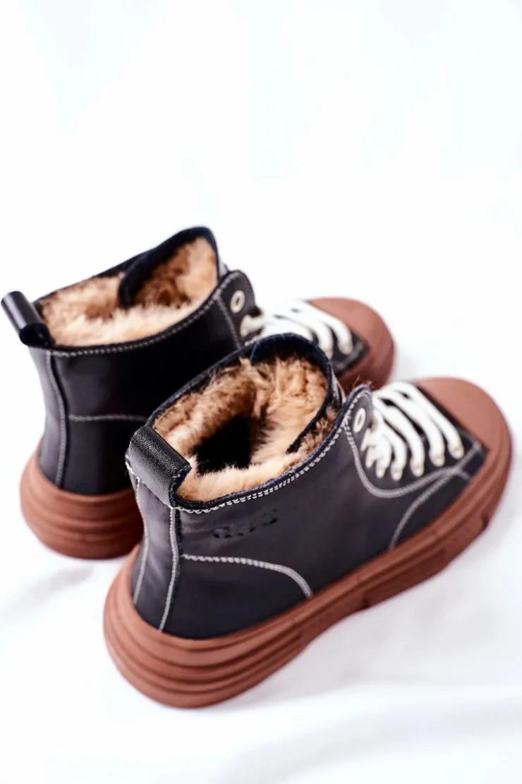 Jeśli szukasz idealnych trampek, to firma GOE ma coś specjalnego! Wysokie trampki, ocieplone wewnątrz kożuszkiem, sięgające aż za kostki. Model klasycznie sznurowany. Buty w całości zostały wykonane z naturalnej skóry licowej. Góra cholewki delikatnie docieplona grubym, sztucznym futerkiem. Dodatkowym atutem jest solidna, antypoślizgowa podeszwa. Przy wyborze rozmiaru prosimy sugerować się tabelą rozmiarów.