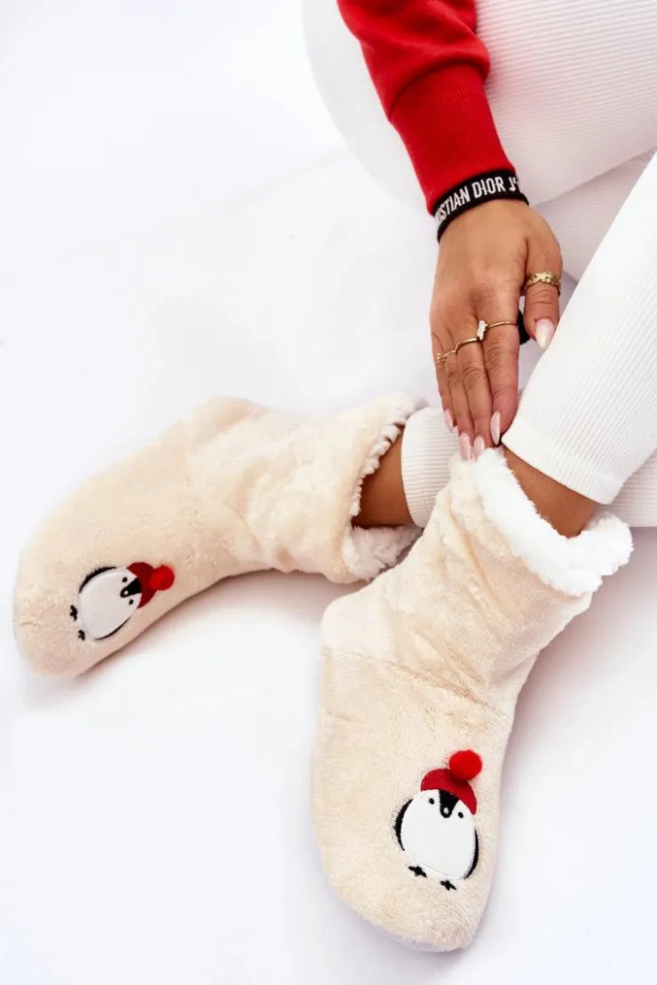Idealne papcie damskie dla każdego zmarzlucha! Zostały wykonane z miękkiego materiału tekstylnego. Wewnątrz posiadają ocieplenie w postaci miękkiego kożuszka. Podeszwa z gumowego tworzywa z wypustkami jest antypoślizgowa. Papcie te świetnie izolują przed zimnem. Niezwykle wygodne i komfortowe podczas użytkowania. Ozdobione z przodu uroczym pingwinkiem. Przy wyborze rozmiaru prosimy kierować tabelą rozmiarów.