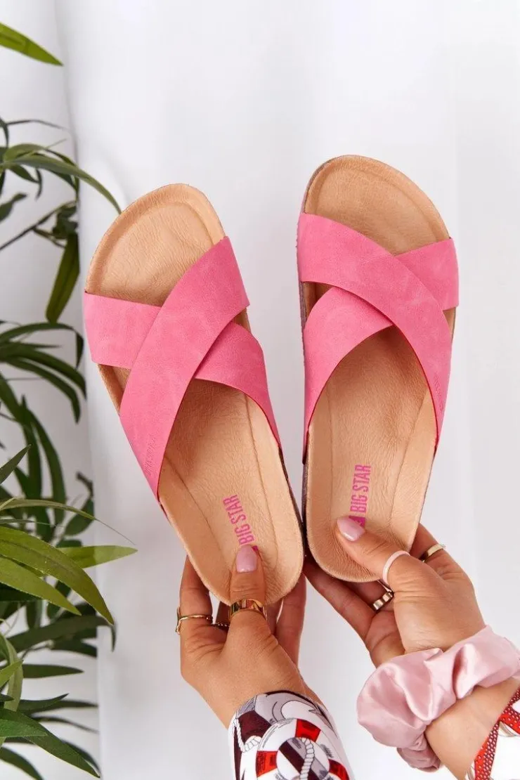 Klapki na korkowej podeszwie od polskiej marki BIG STAR. Buty posiadają profilowaną wkładkę ze skóry naturalnej, która zagwarantuje komfort. Modny fason, który pasuje do wszystkiego! Przy wyborze rozmiaru prosimy sugerować się tabelą rozmiarów.
