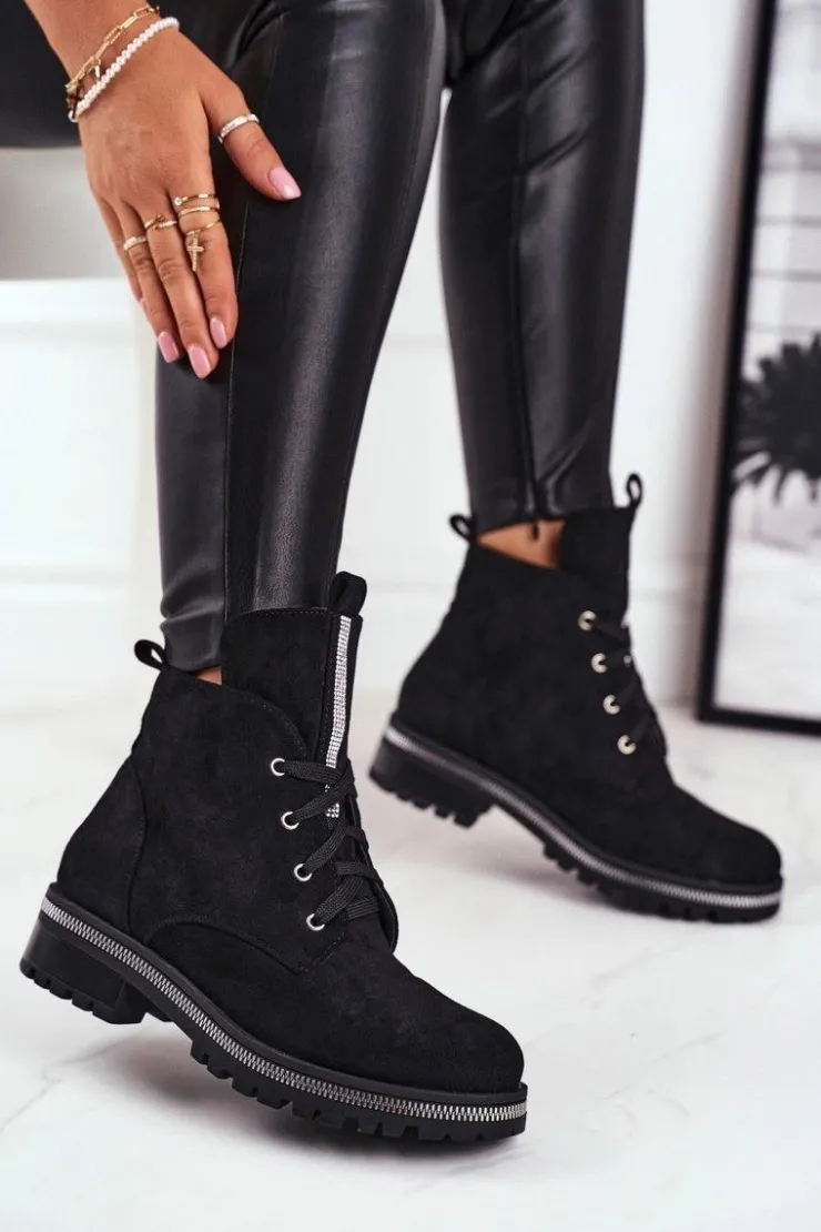 Hot Boto Botki Damskie Eko Zamsz Czarne Hundret Percent