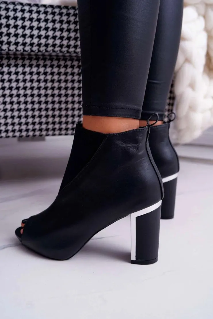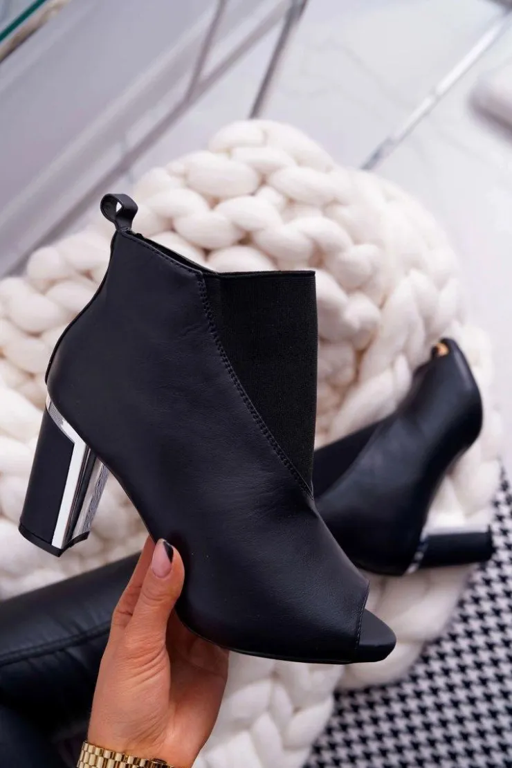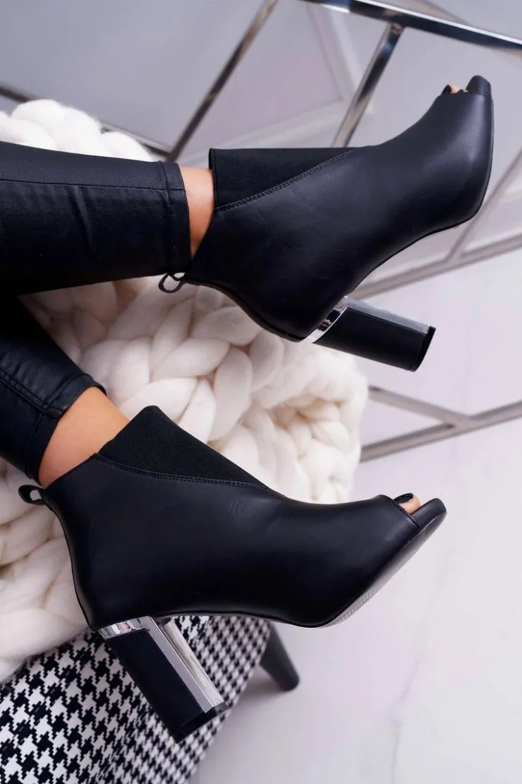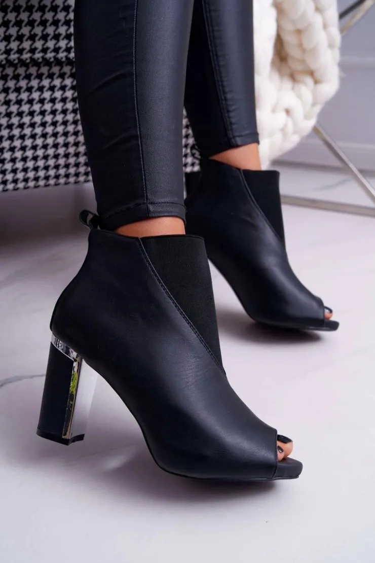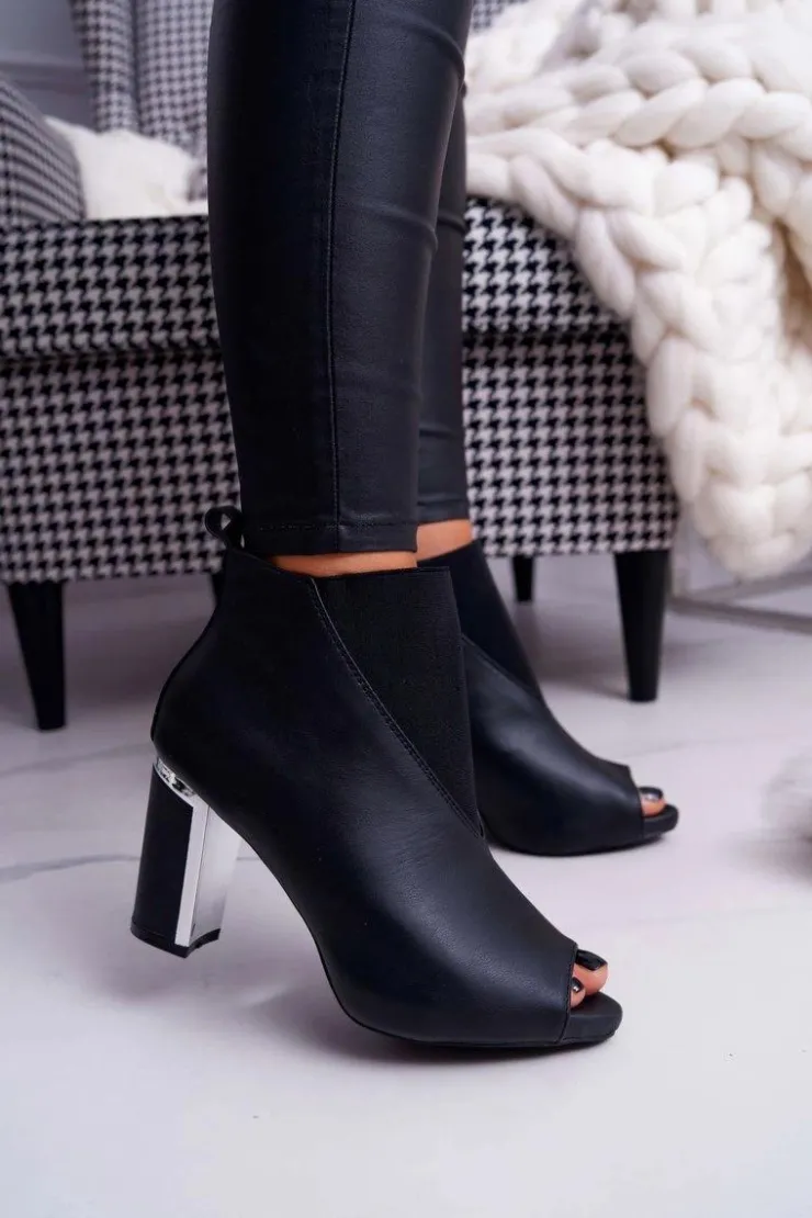 Hot Boto Botki Damskie na Słupku Odkryte Palce Wsuwane Czarne Germen