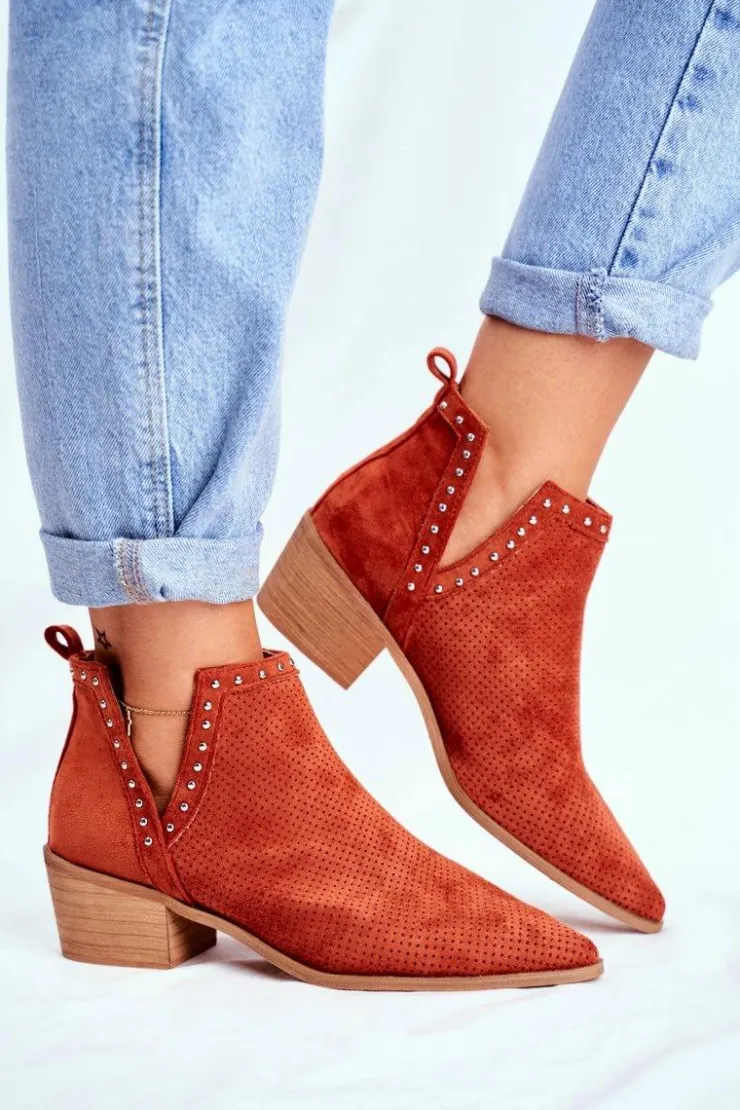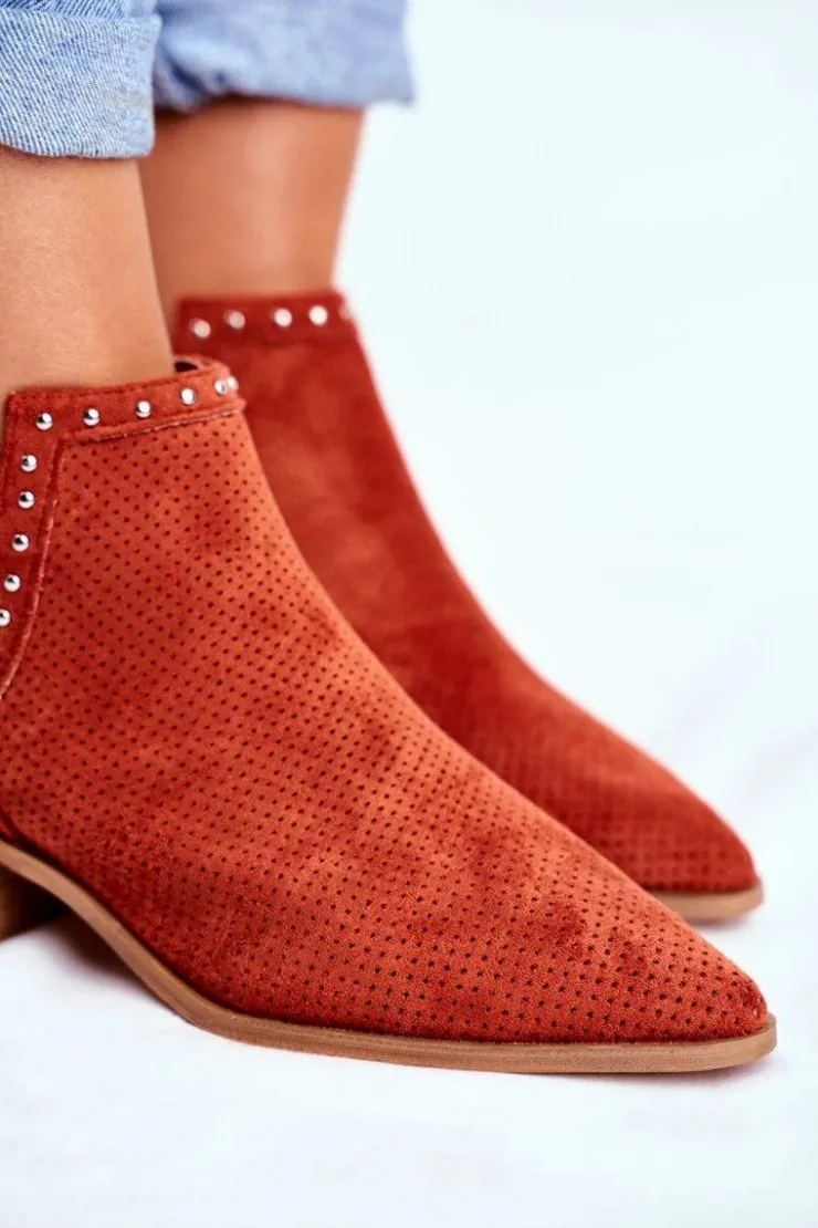 Hot Boto Botki Damskie Na Słupku Zamszowe Ażurowe Pomarańczowe Margate