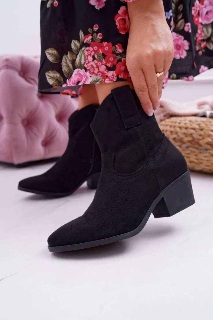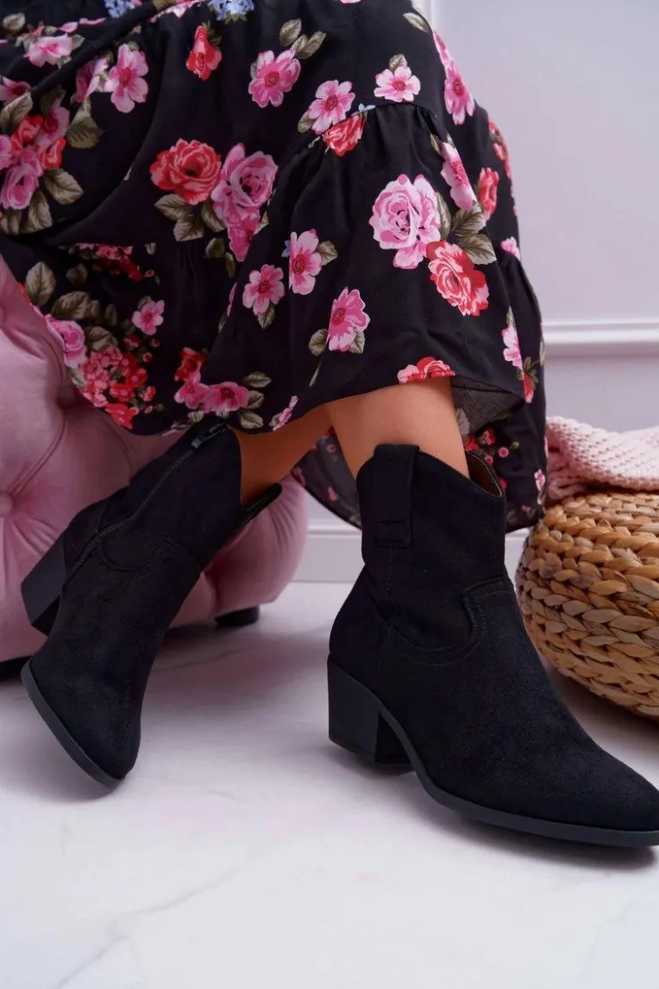 Hot Boto Botki Damskie Płaski Obcas Kowbojki Czarne Telifa