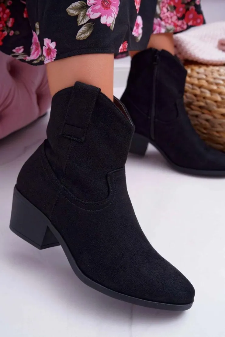 Spraw sobie odrobinę luksusu i wybierz nasze wspaniałe botki na obcasie. Niepowtarzalne botki w stylu kowbojek, które idealnie pasują do jesiennych stylizacji. Suwak na boku ułatwi nam zakładanie. Wnętrze pokryte delikatnym kocem obuwniczym, które da nam poczucie komfortu nawet w najchłodniejsze dni! Przy wyborze rozmiaru prosimy sugerować się tabelą rozmiarów, która dostępna jest po najechaniu bądź kliknięciu w dany rozmiar.