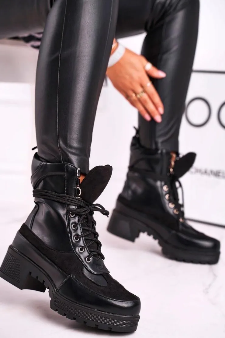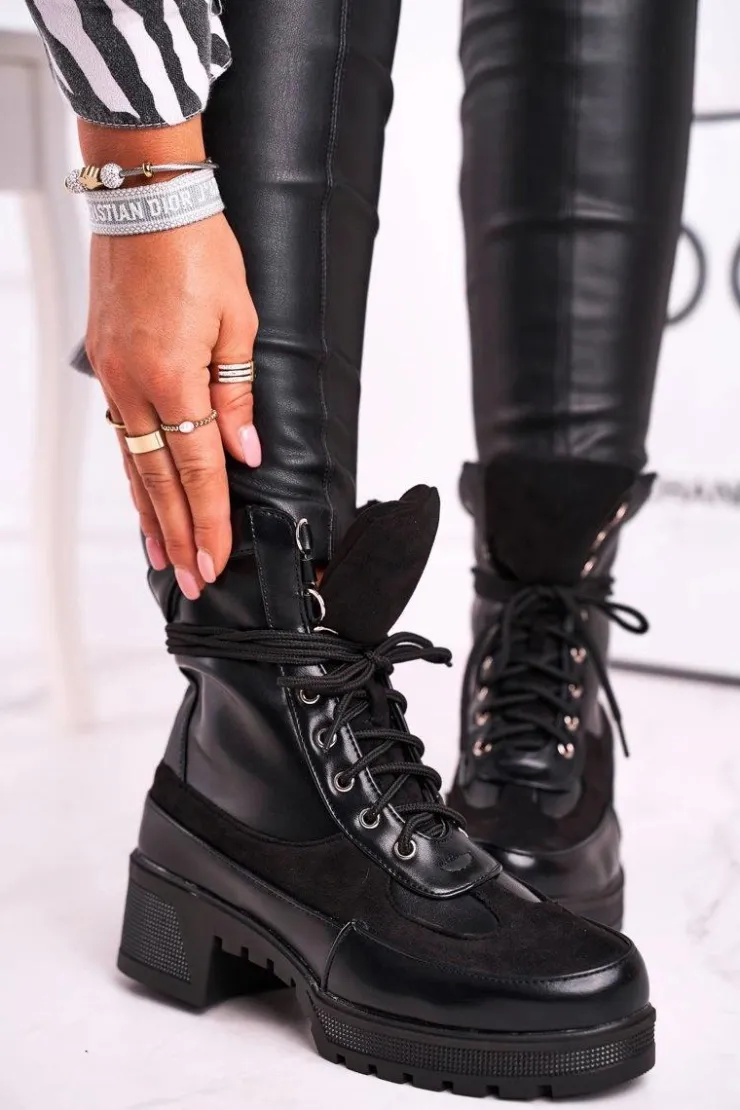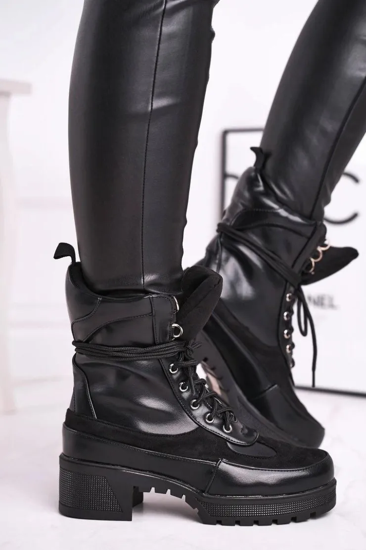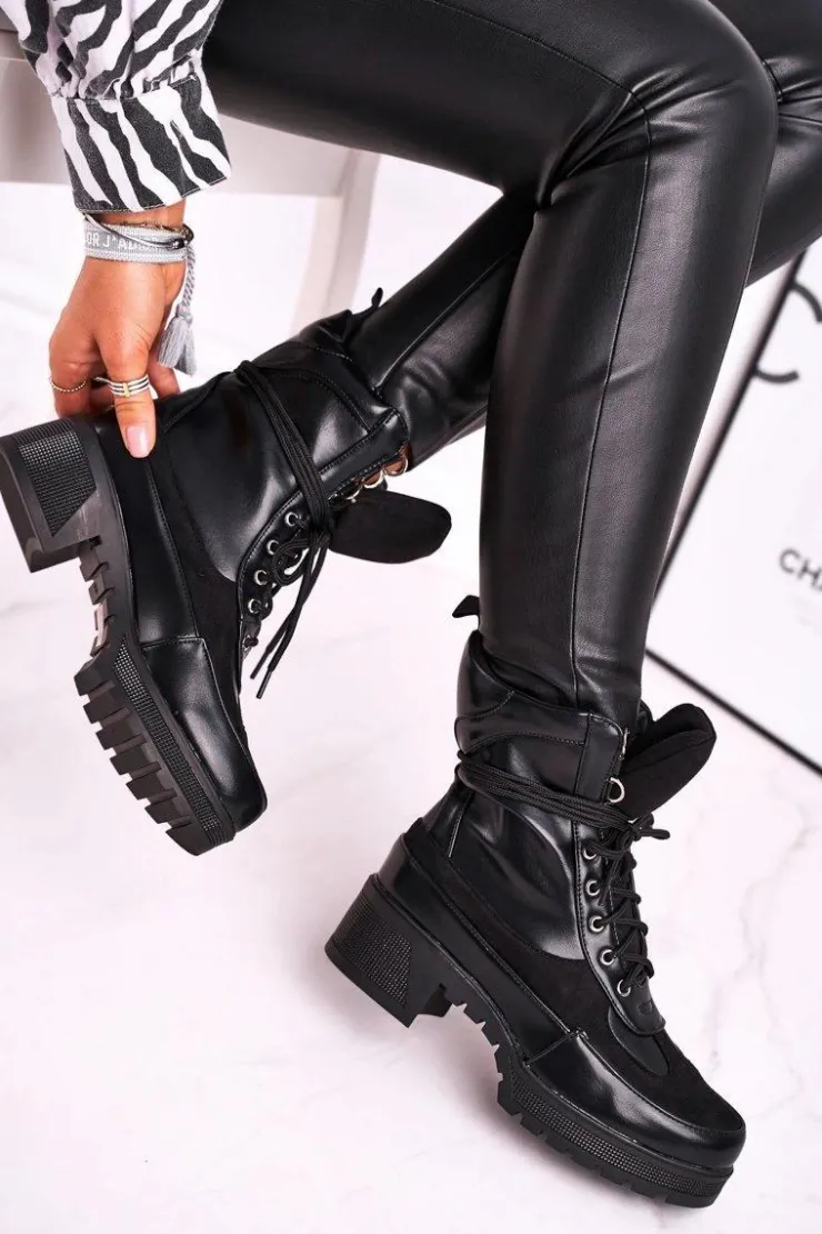Hot Boto Botki Damskie Wysokie Sznurowane Czarne Ridley
