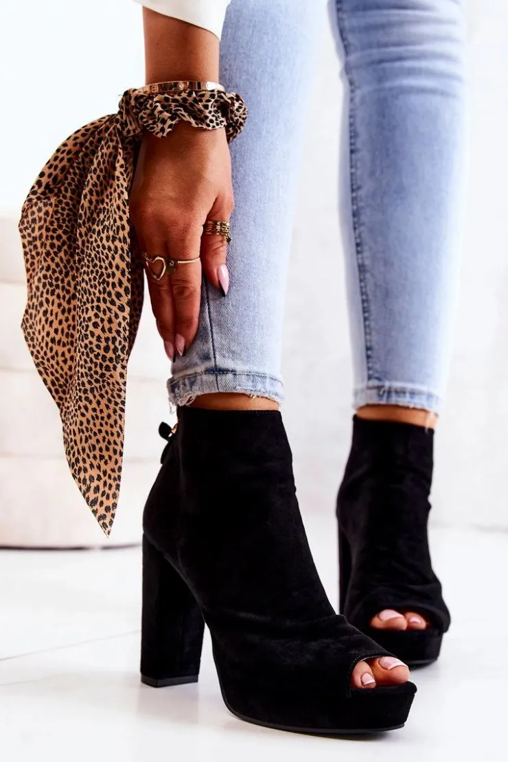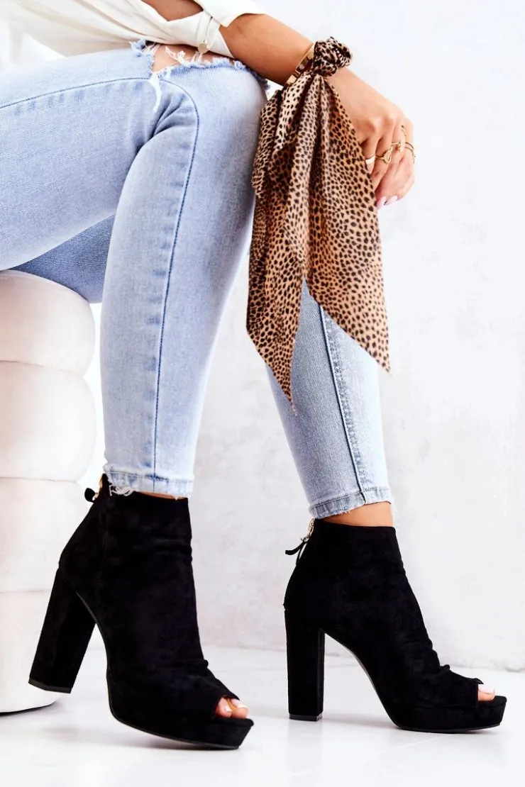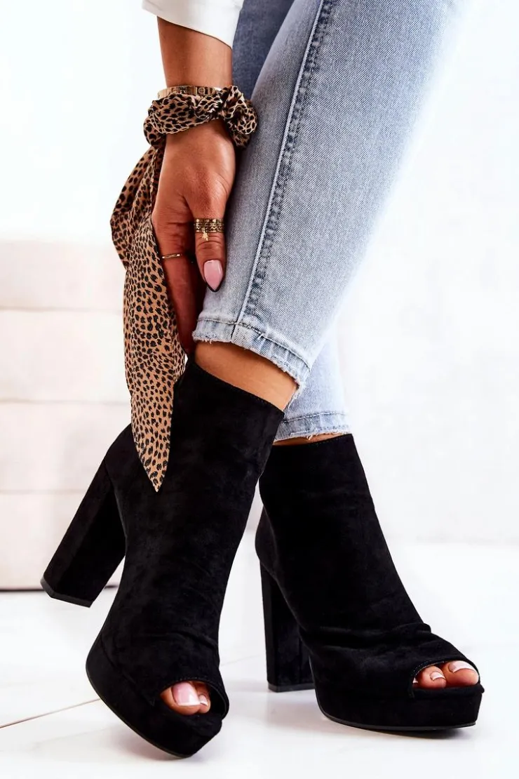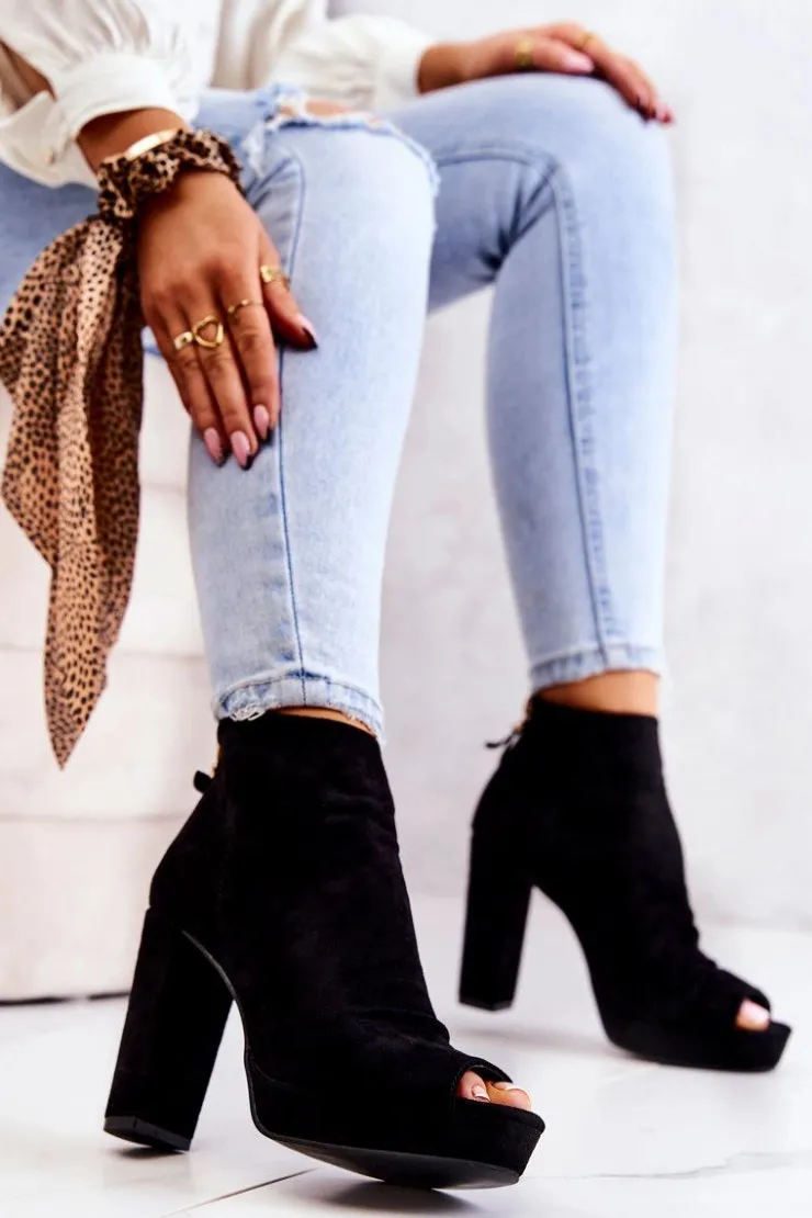 Hot Boto Botki Na Słupku Odkryte Palce Czarne Adore