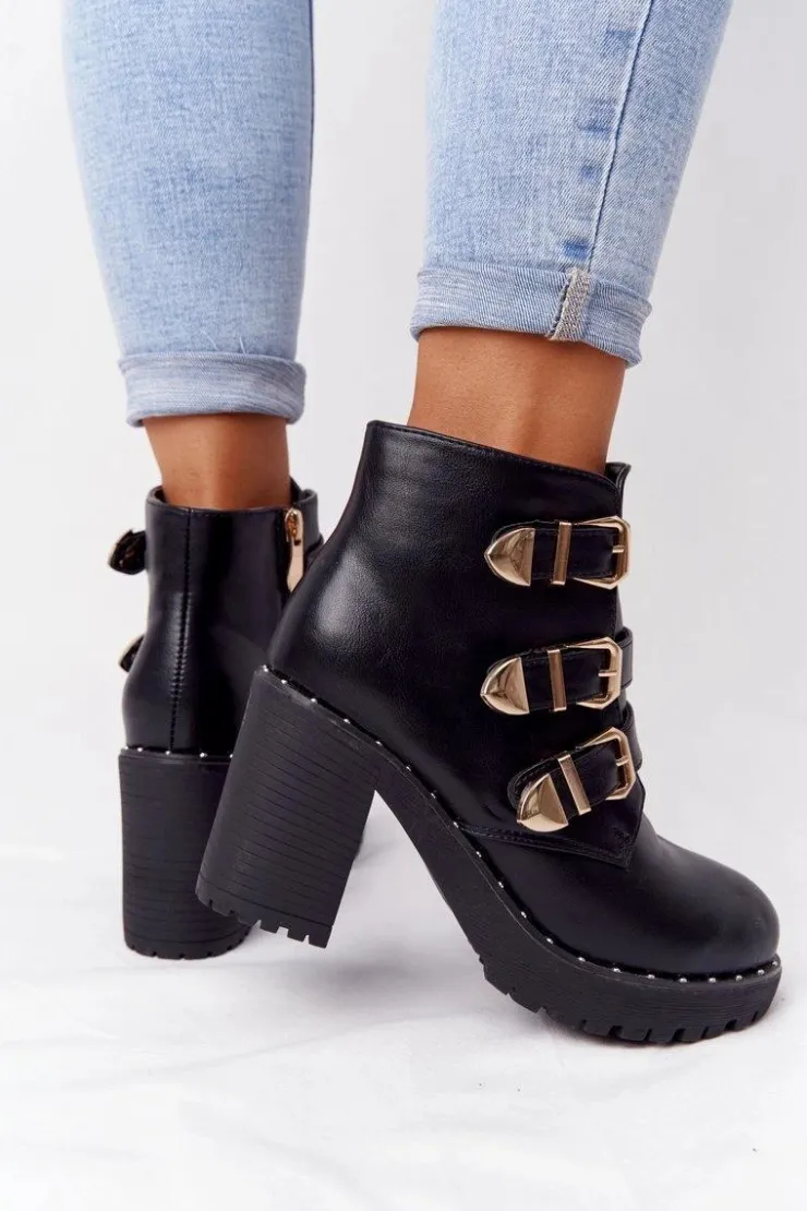 Wyjątkowe botki na słupku marki LU BOO. Buty wykonane są z eko skóry, posiadają ozdobne złote klamry. Koniecznie sprawdź całą naszą kolekcję damskich botków! Przy wyborze rozmiaru prosimy sugerować się tabelą rozmiarów.