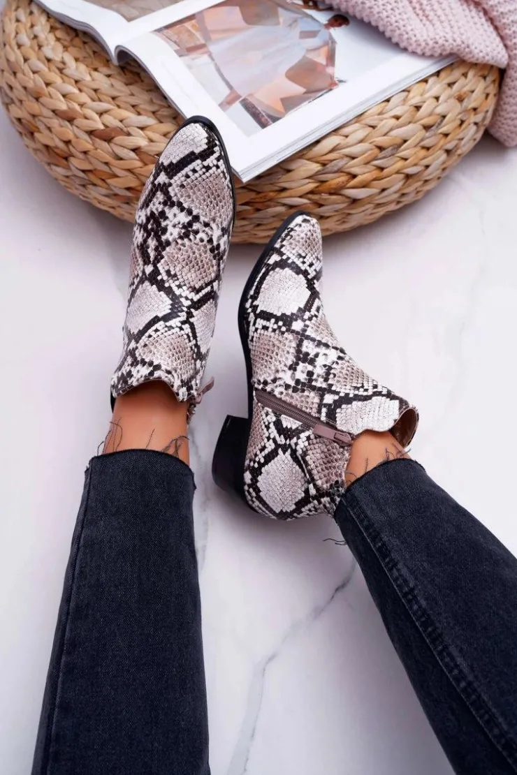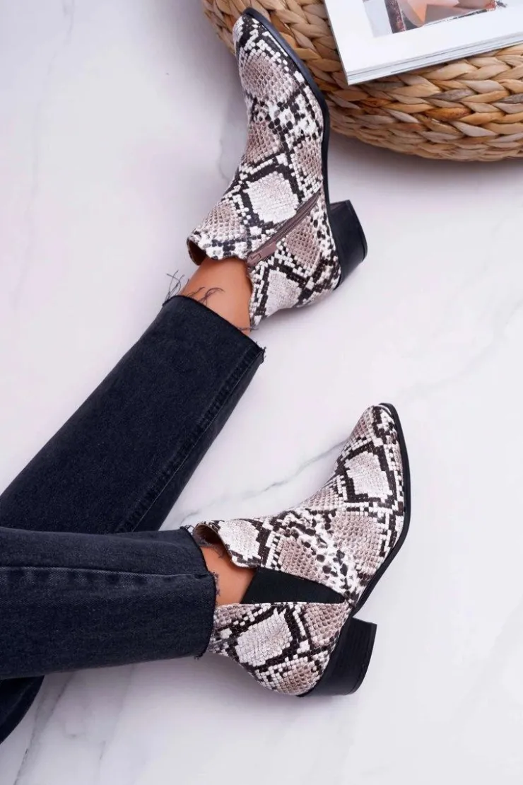 Hot Boto Damskie Botki Płaskie Skóra Węża Murino