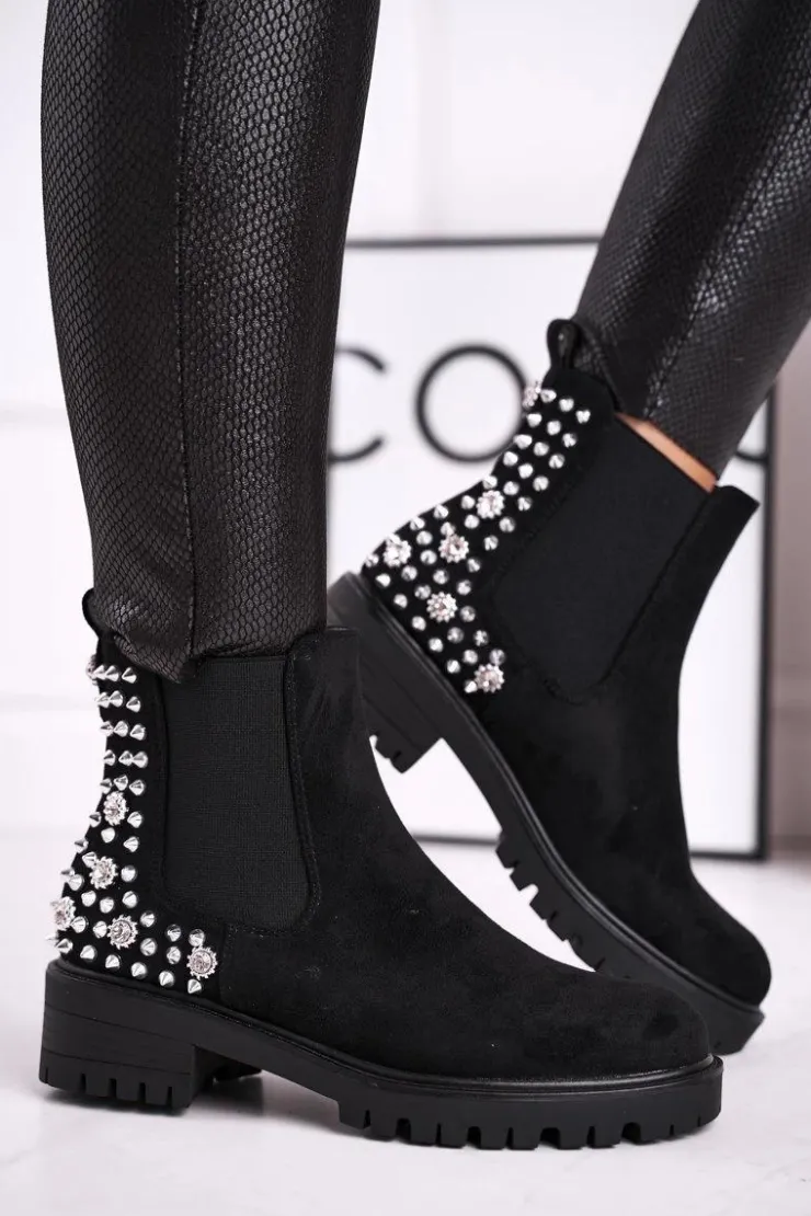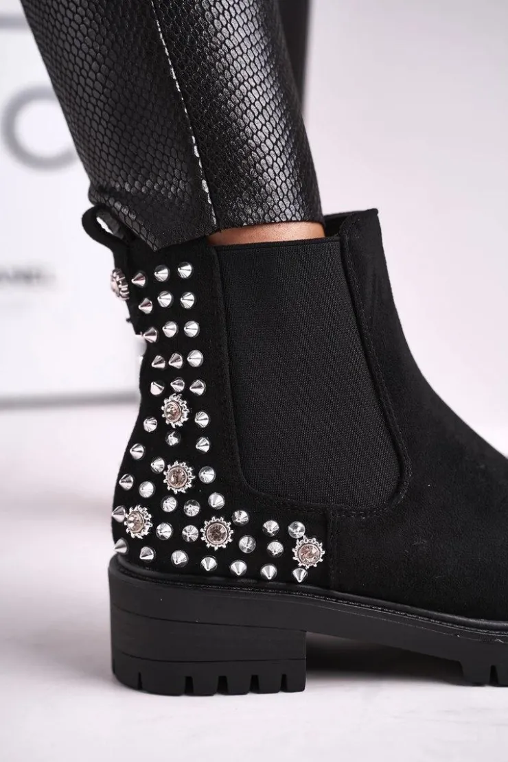 Hot Boto Damskie Botki Sztyblety Z Dżetami Czarne Lady In Black