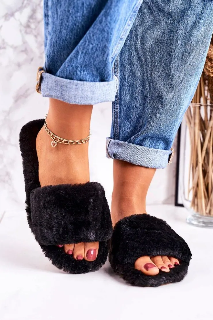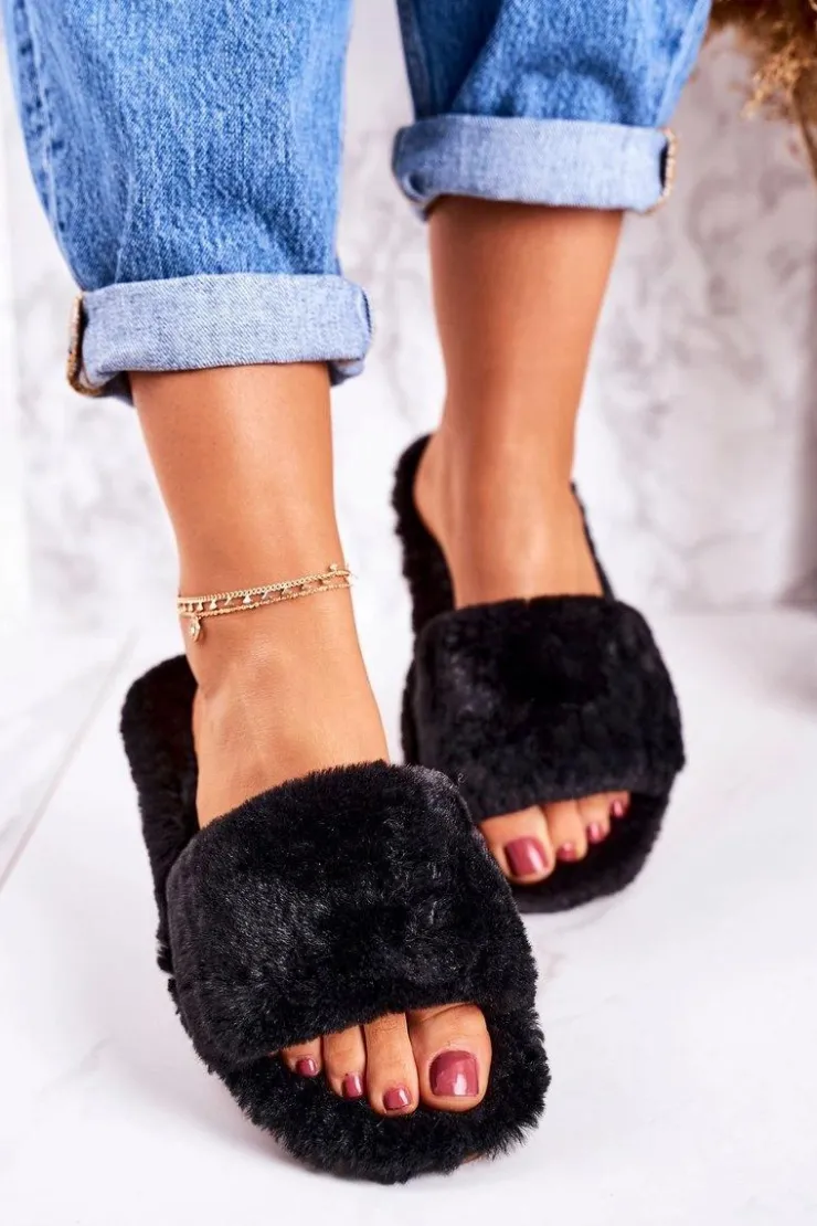 Hot Boto Damskie Klapki Papcie Futrzane Czarne Cold Days