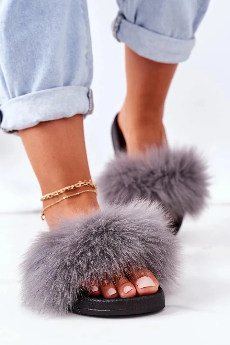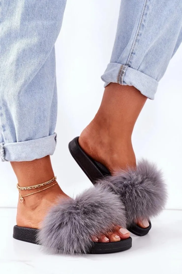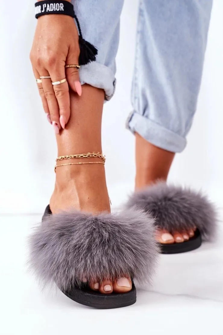 Wygodne klapki z naturalnym futerkiem. Gumowa, delikatnie profilowana podeszwa oraz miękka cholewka zapewnią komfort. Klapki dostępne są w wielu pięknych kolorach.Przy wyborze rozmiaru prosimy sugerować się tabelą rozmiarów.