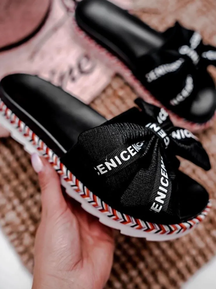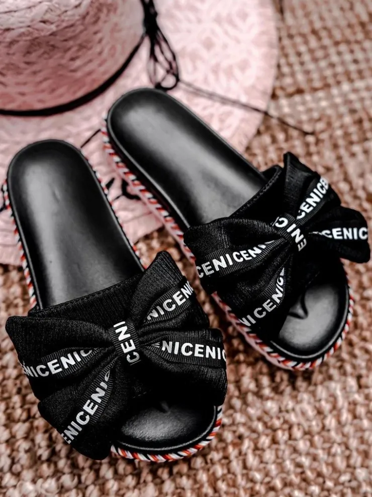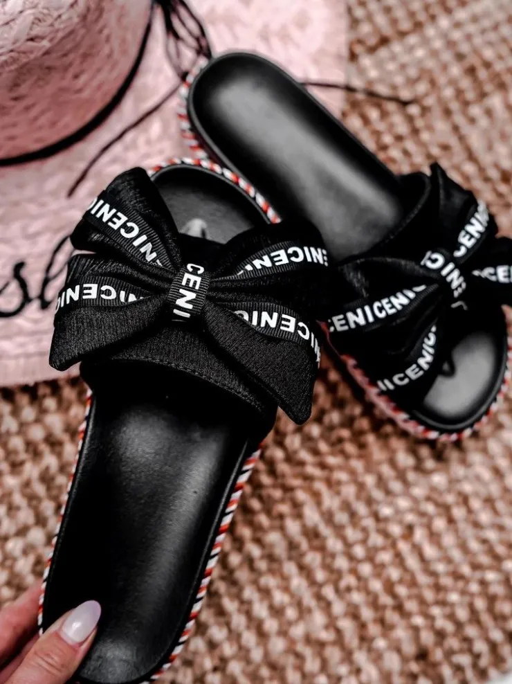 Hot Boto Damskie Klapki Z Kokardką Czarne Tarela