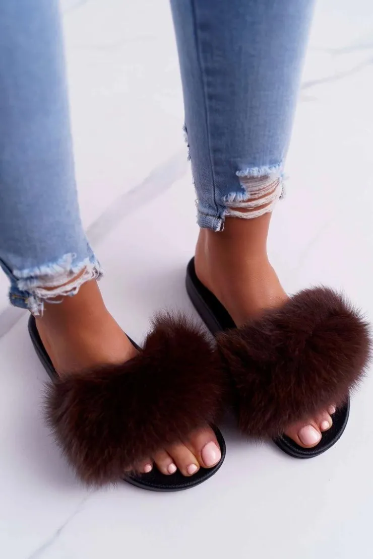 Klapki damskie z naturalnym futerkiem. Podeszwa wykonana jest z gumowego, lekkiego tworzywa. Delikatnie profilowana wkładka zadba o Twój komfort.
