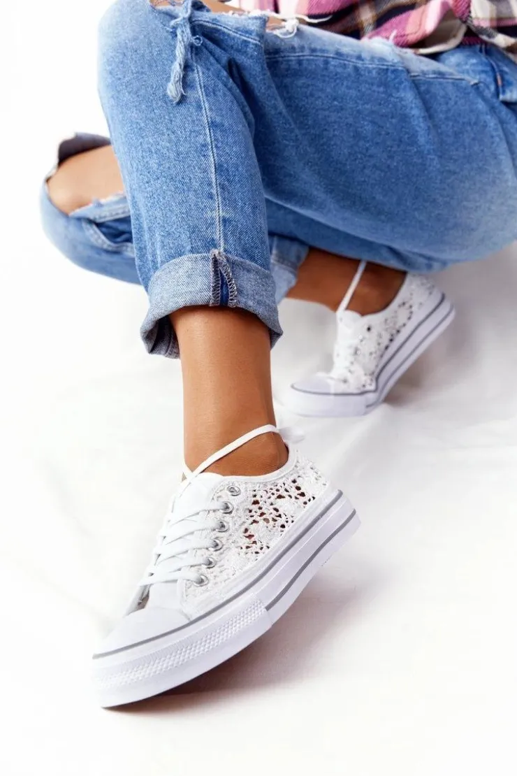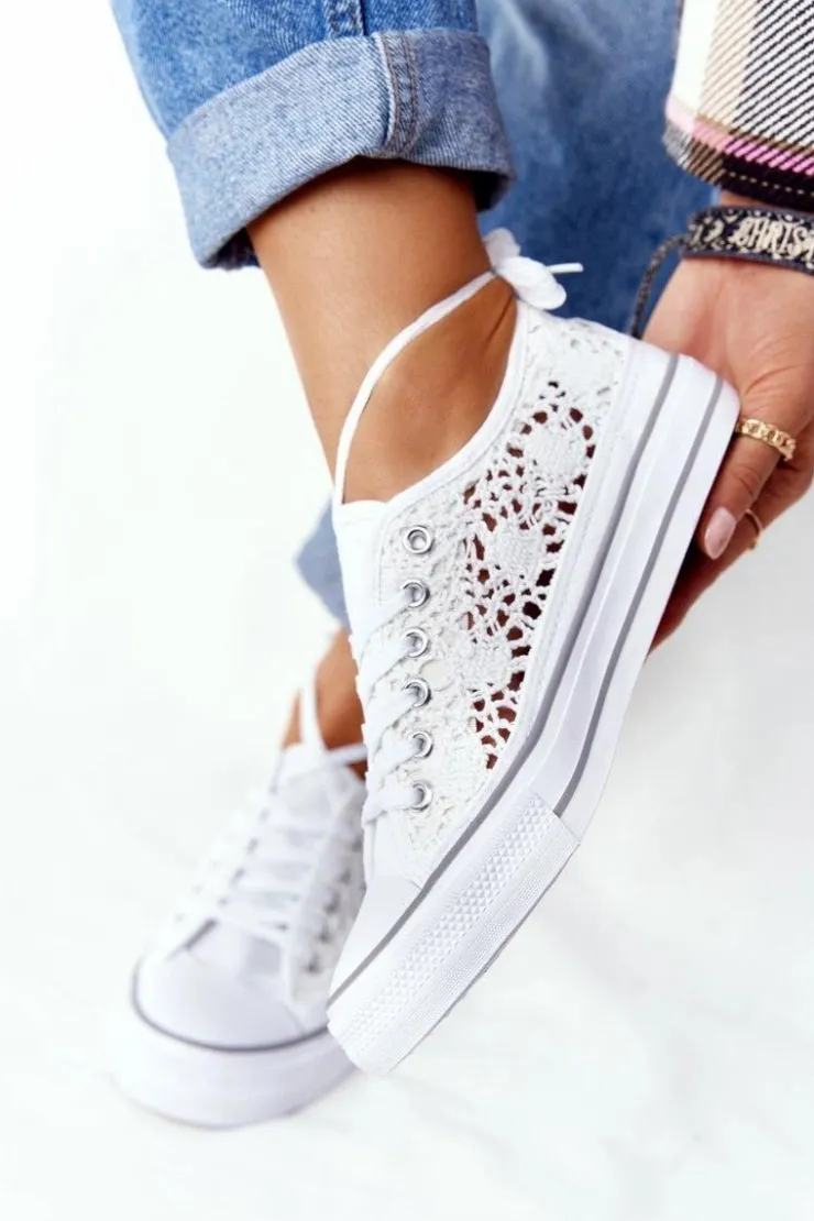 Wyjątkowe damskie trampki. Koronkowe tenisówki pasują do wielu letnich stylizacji. Buty dobrze dopasowują się do kształtu stopy, posiadają miękką, materiałową wkładkę oraz antypoślizgową podeszwę. Koniecznie sprawdź całą naszą kolekcję damskich trampek. Przy wyborze rozmiaru prosimy sugerować się tabelą rozmiarów.