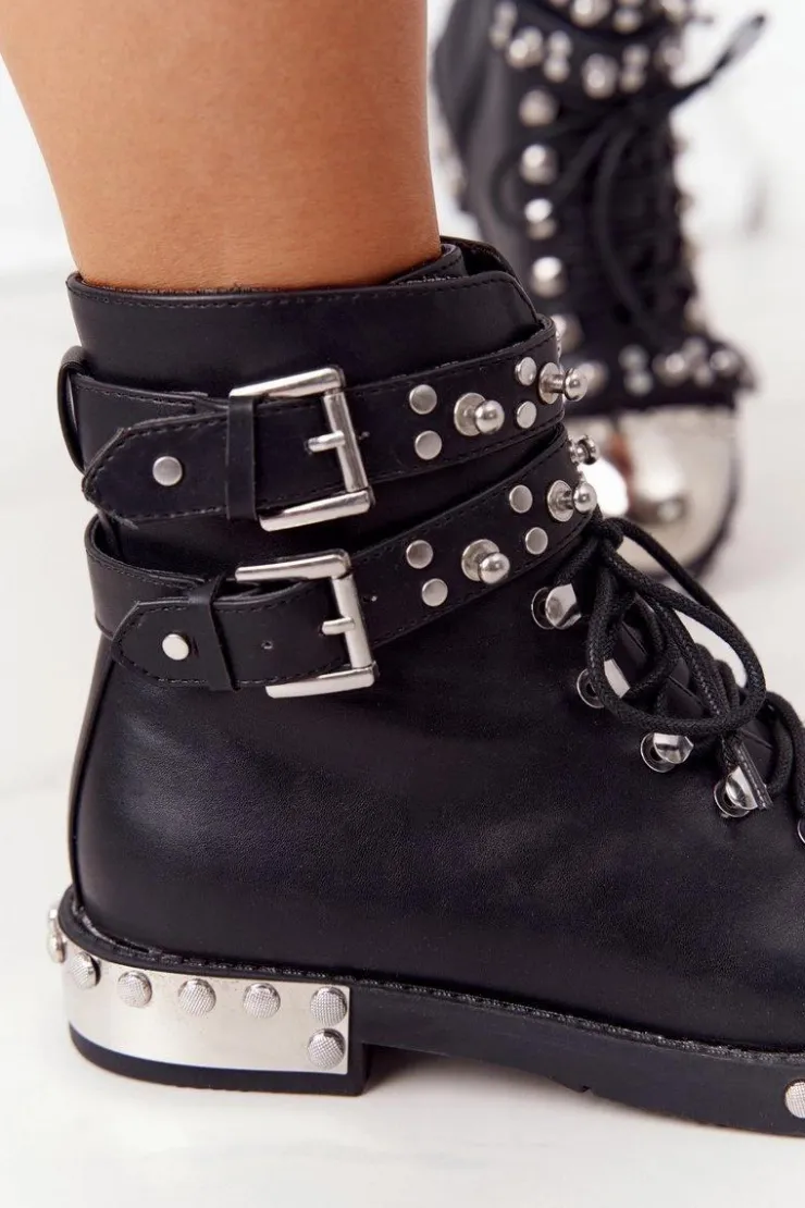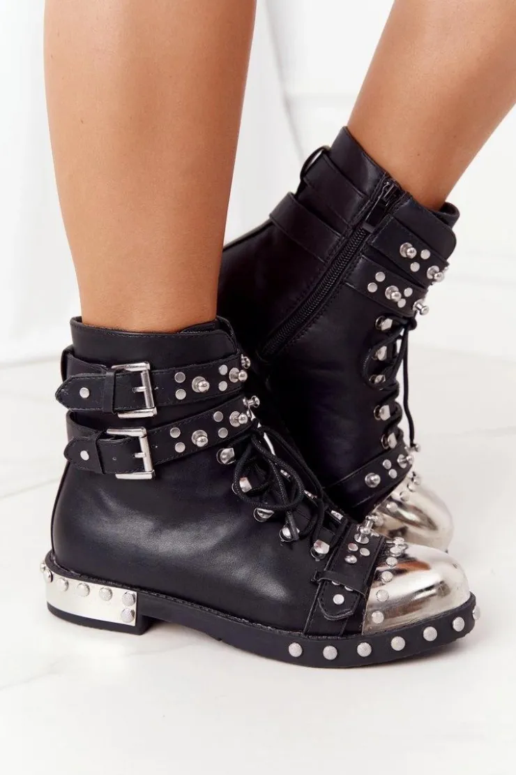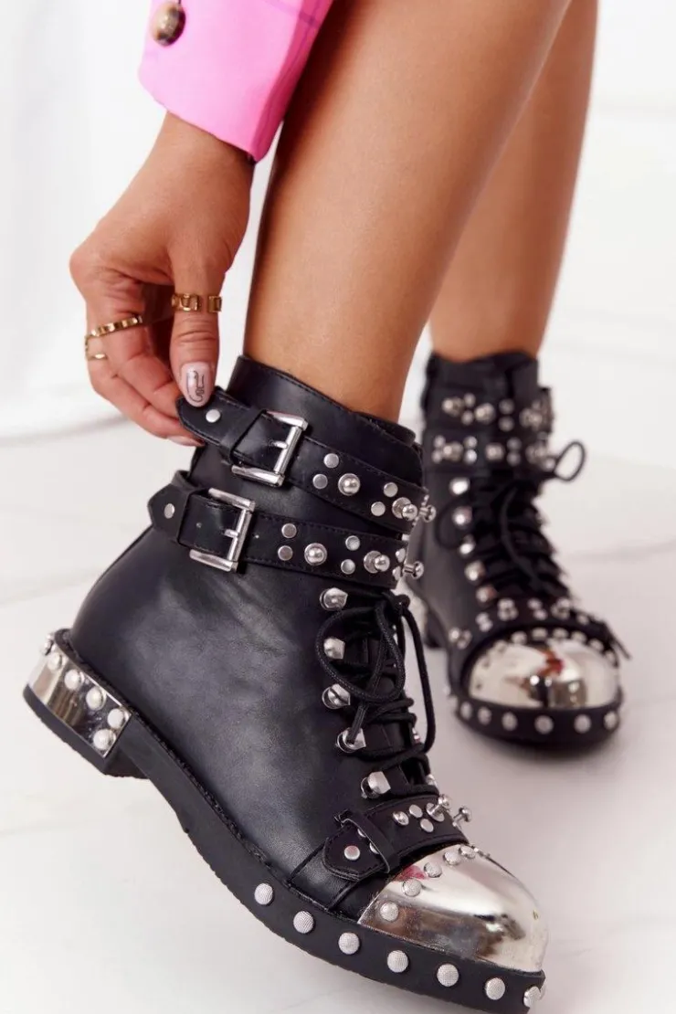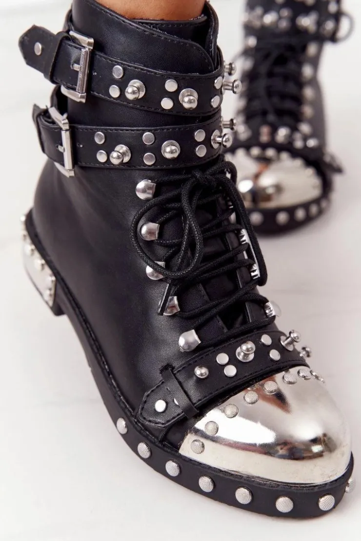 Hot Boto Damskie Ocieplane Botki Workery Z Dżetami Czarne Lu Boo