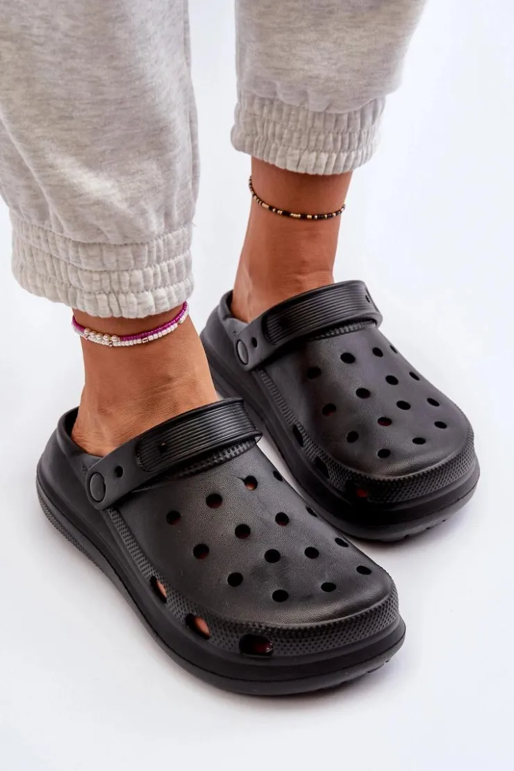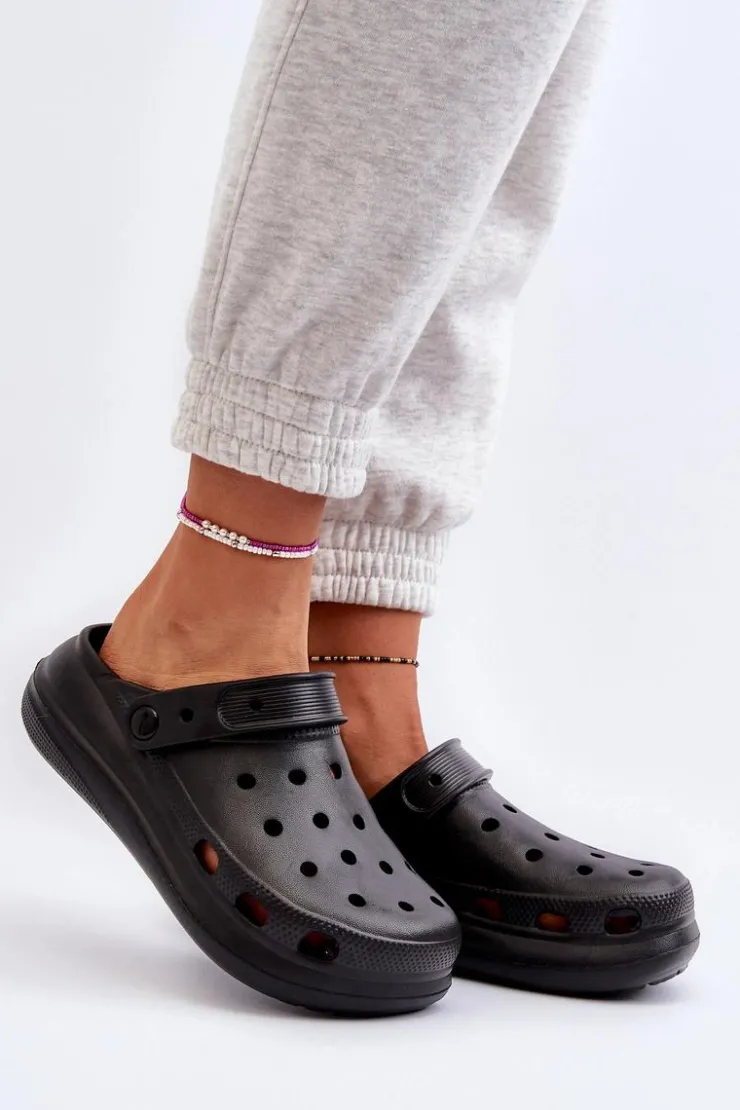Klapki damskie wykonane z lekkiego, piankowego materiału. Ruchomy pasek zapewnia stabilność i chroni przed ślizganiem się stopy. Platforma zapewnia wygodę podczas noszenia. Dodatkowe otwory w cholewce pozwalają na odpowiedni przepływ powietrza, zapewniając komfort nawet podczas gorących dni. Przy wyborze rozmiaru prosimy sugerować się tabelą rozmiarów.