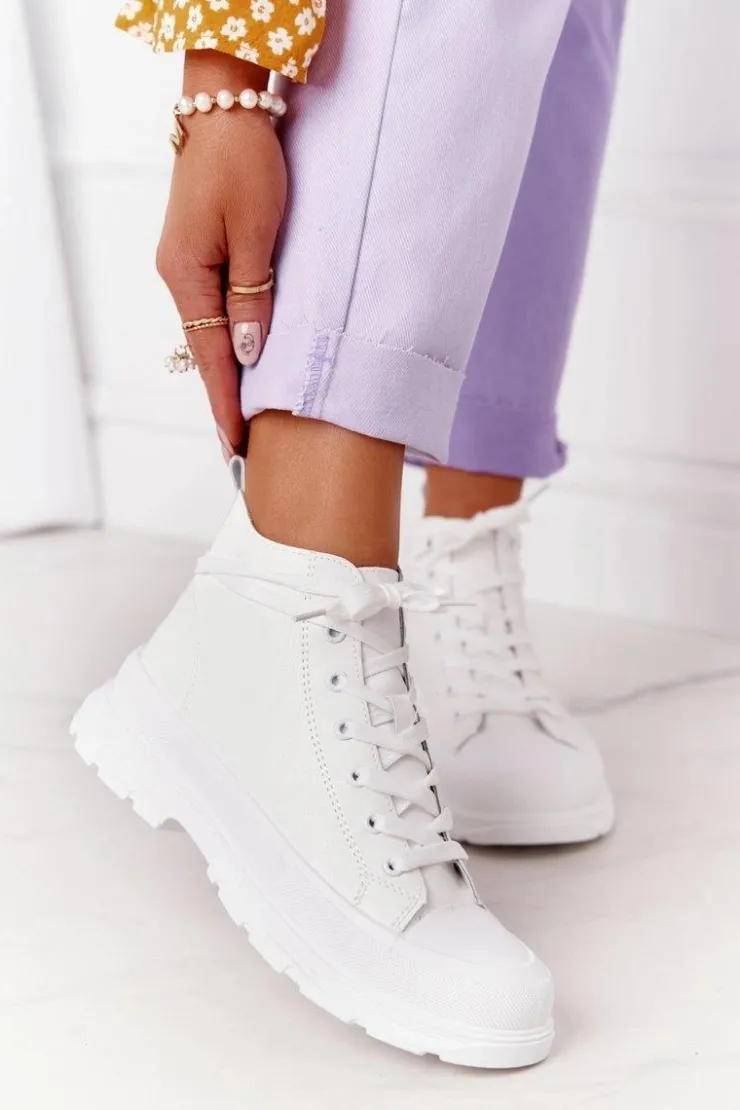 Damskie trampki na dużej podeszwie wykonane z eko skóry. Kultowe już trampki pasują do wielu stylizacji. Buty dobrze dopasowują się do kształtu stopy, posiadają miękką materiałową wkładkę. Koniecznie sprawdź całą naszą kolekcję trampek damskich. Przy wyborze rozmiaru prosimy sugerować się tabelą rozmiarów.