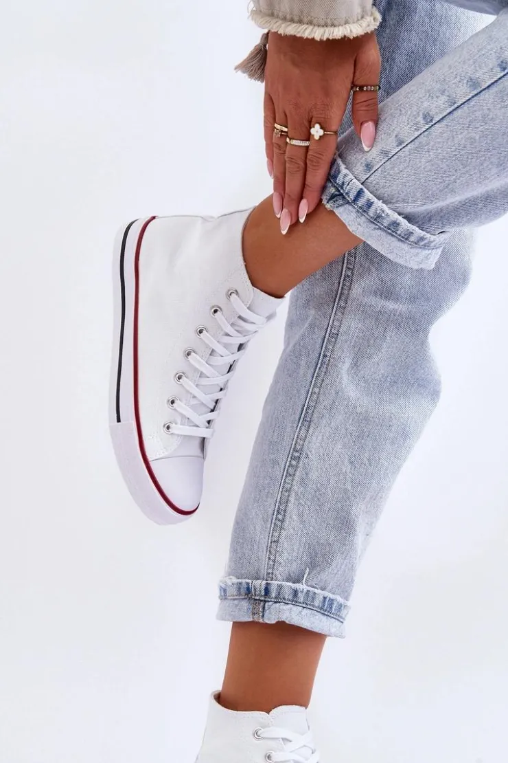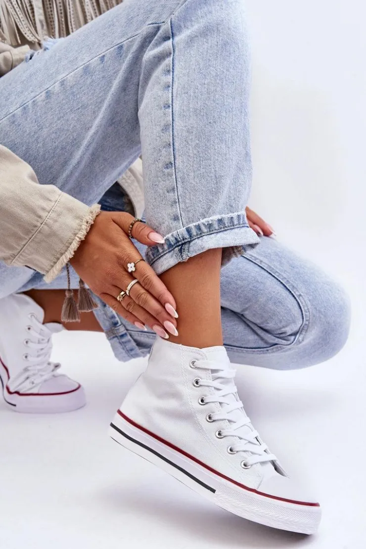 Hot Boto Damskie Trampki Klasyczne Wysokie Białe Remos Biały