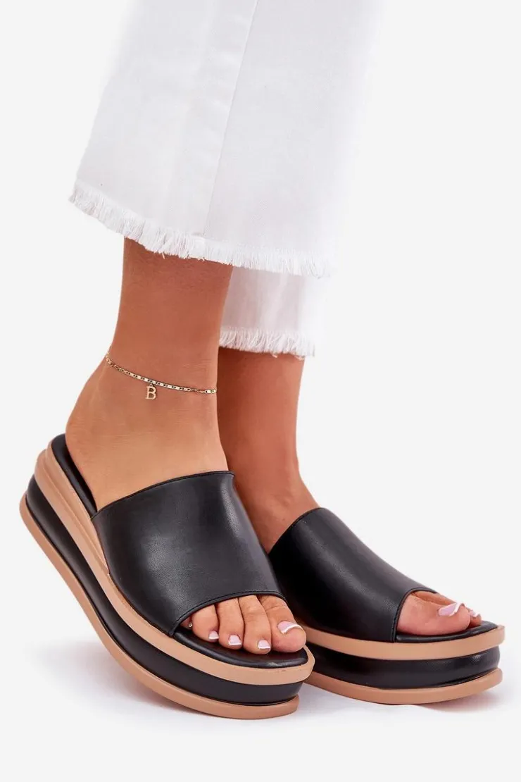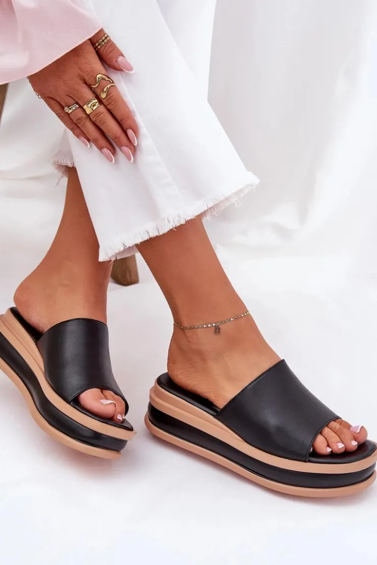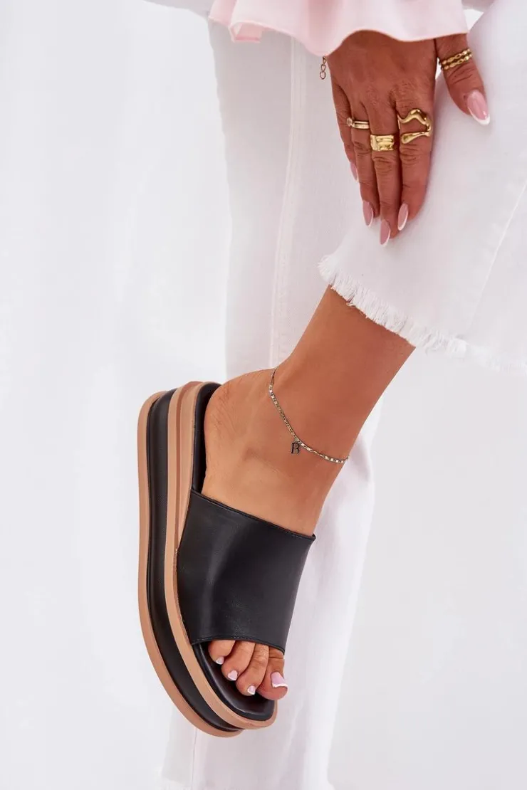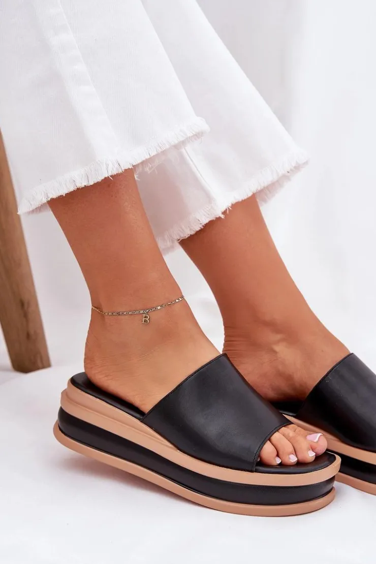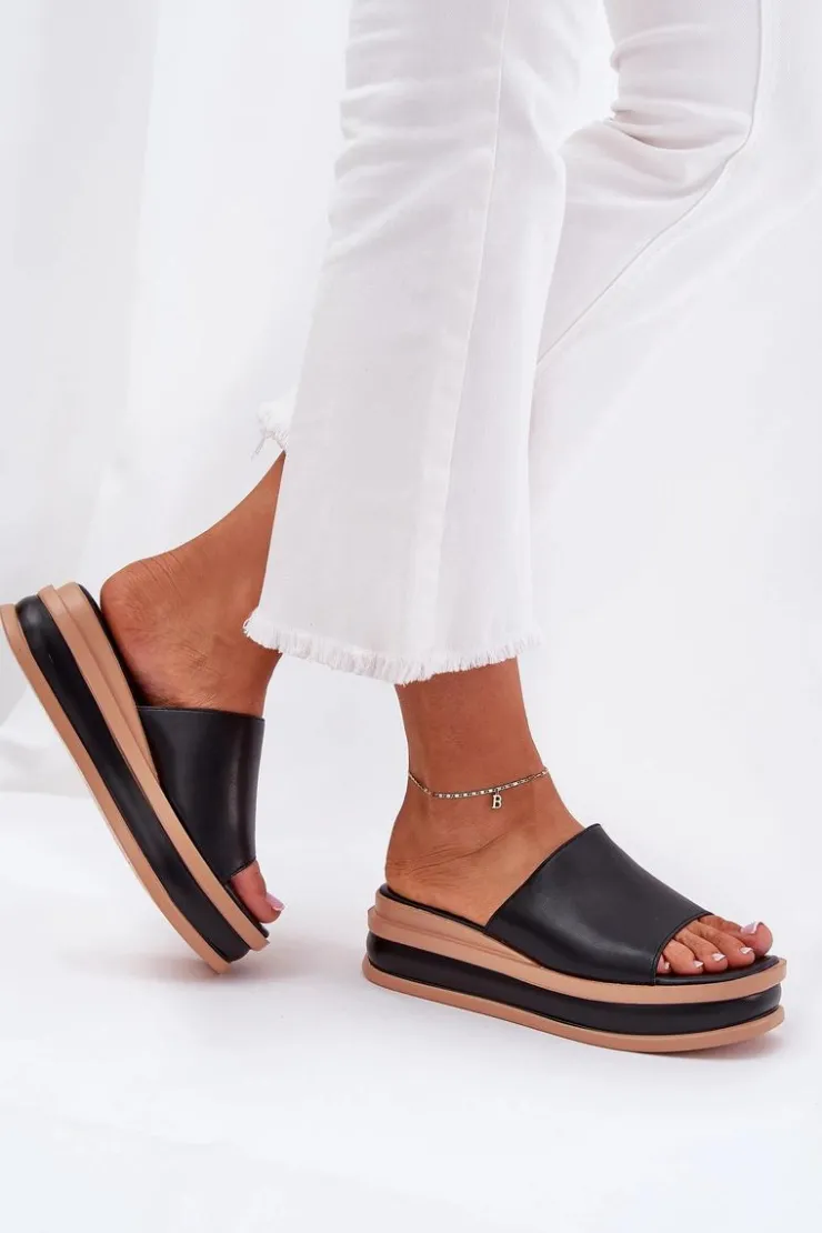 Klasyczne klapki damskie wykonane z eko skóry to połączenie stylu, komfortu. Osadzone na platformie i koturnie, zapewniają stabilność i dodatkową wysokość, jednocześnie utrzymując wygodę przez cały dzień. Ich uniwersalny wygląd sprawia, że będą doskonałym uzupełnieniem codziennych, letnich stylizacji, idealnie pasując do zarówno sukienek, jak i spodni. Przy wyborze rozmiaru prosimy sugerować się tabelą rozmiarów.