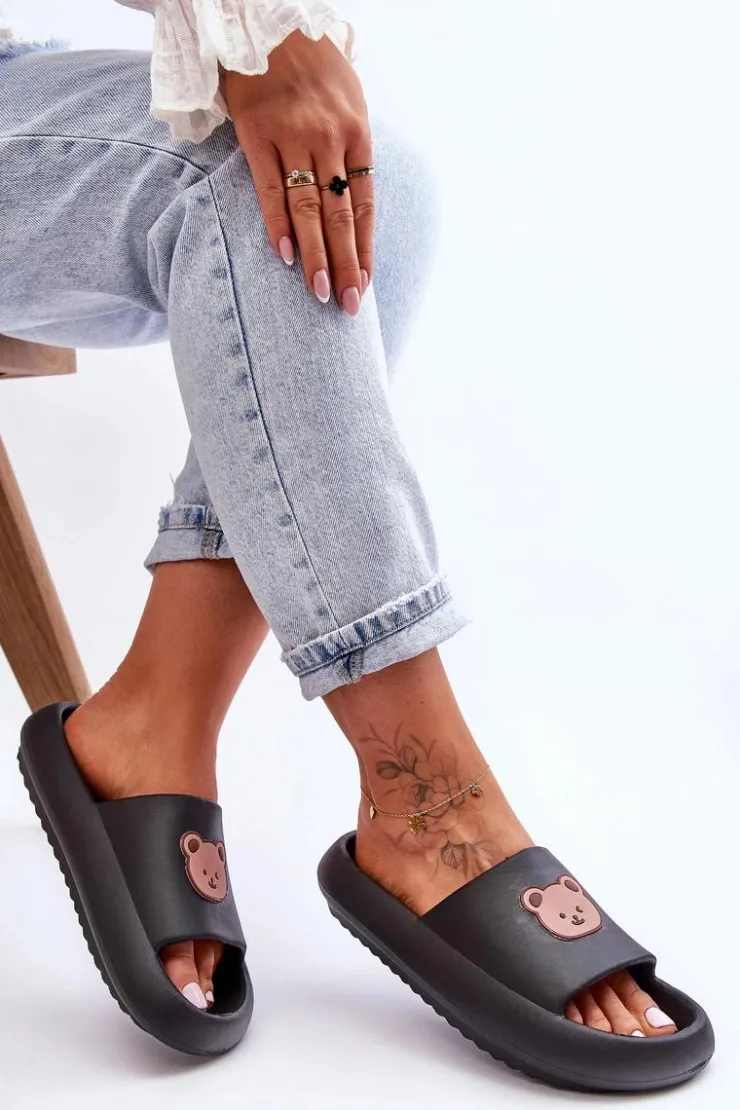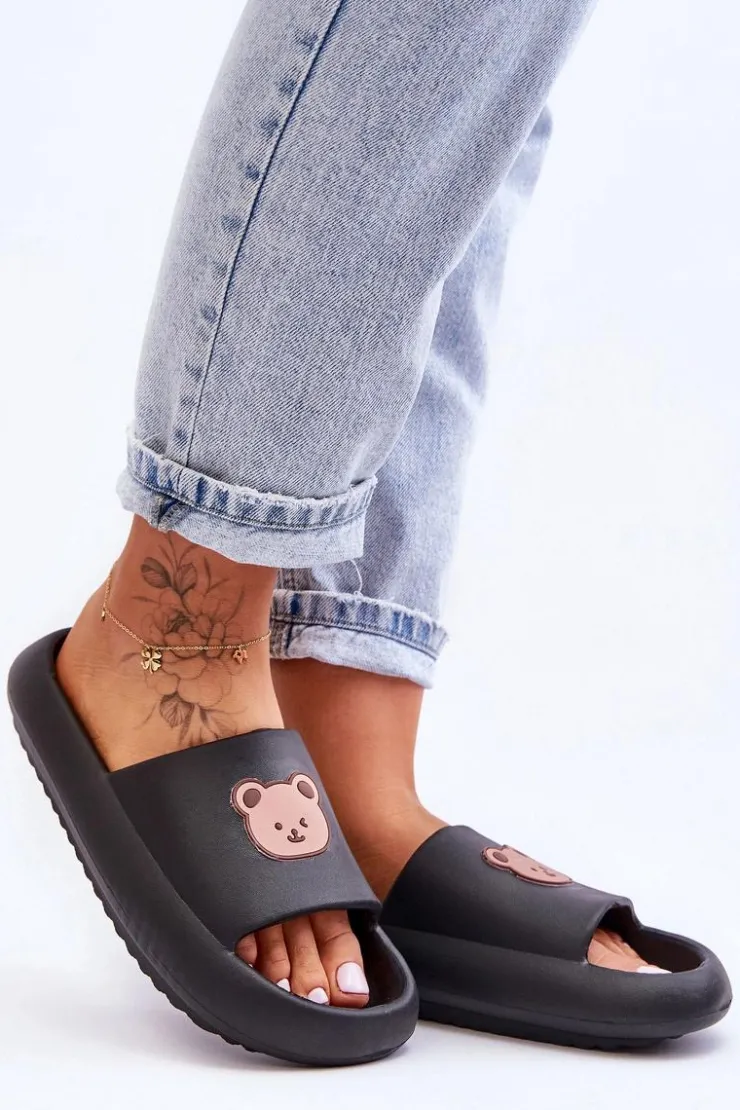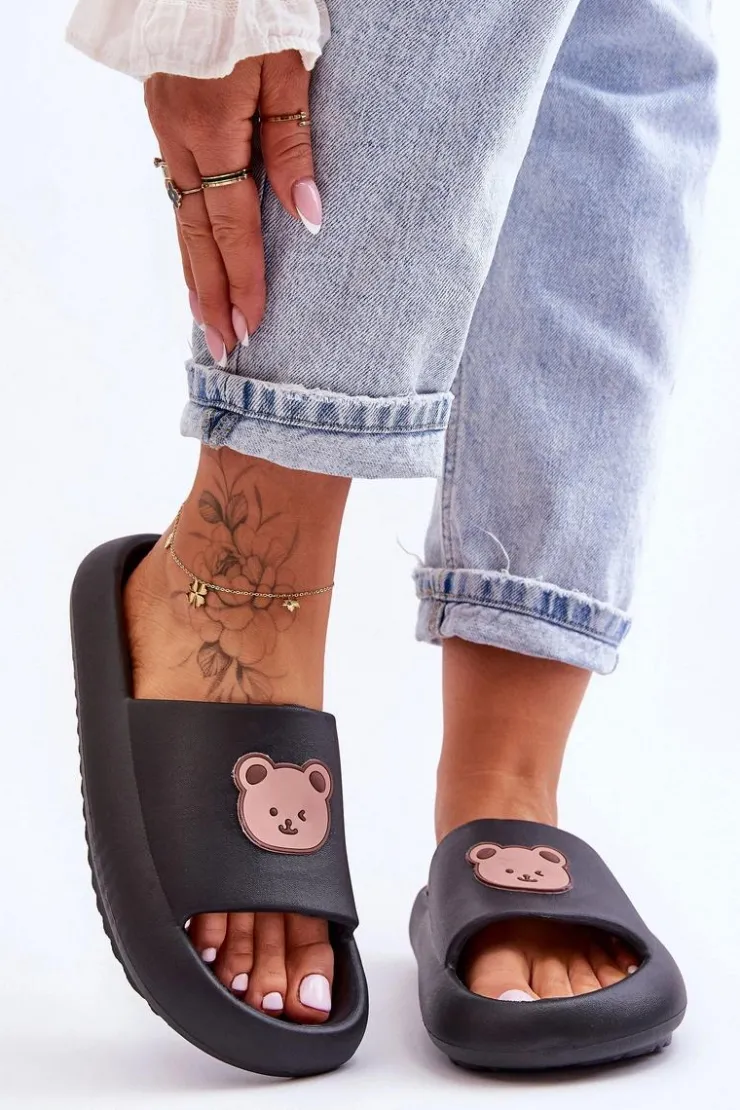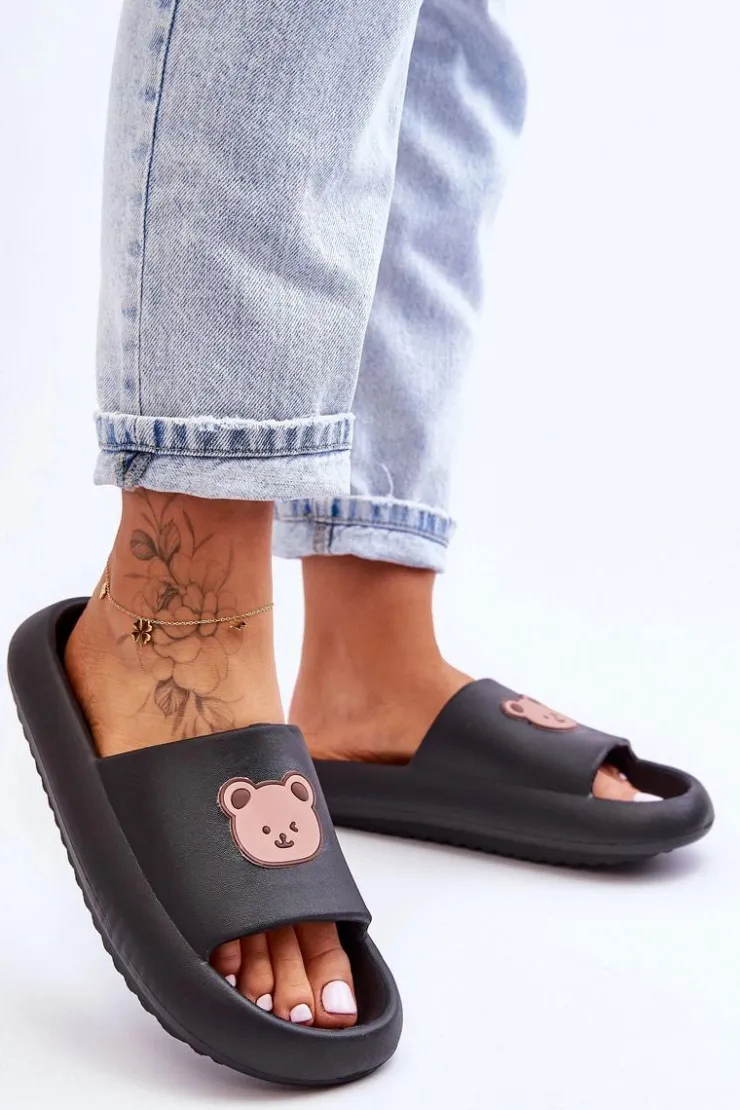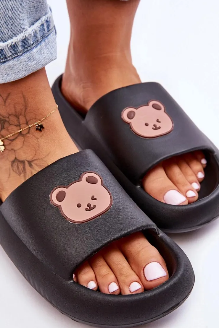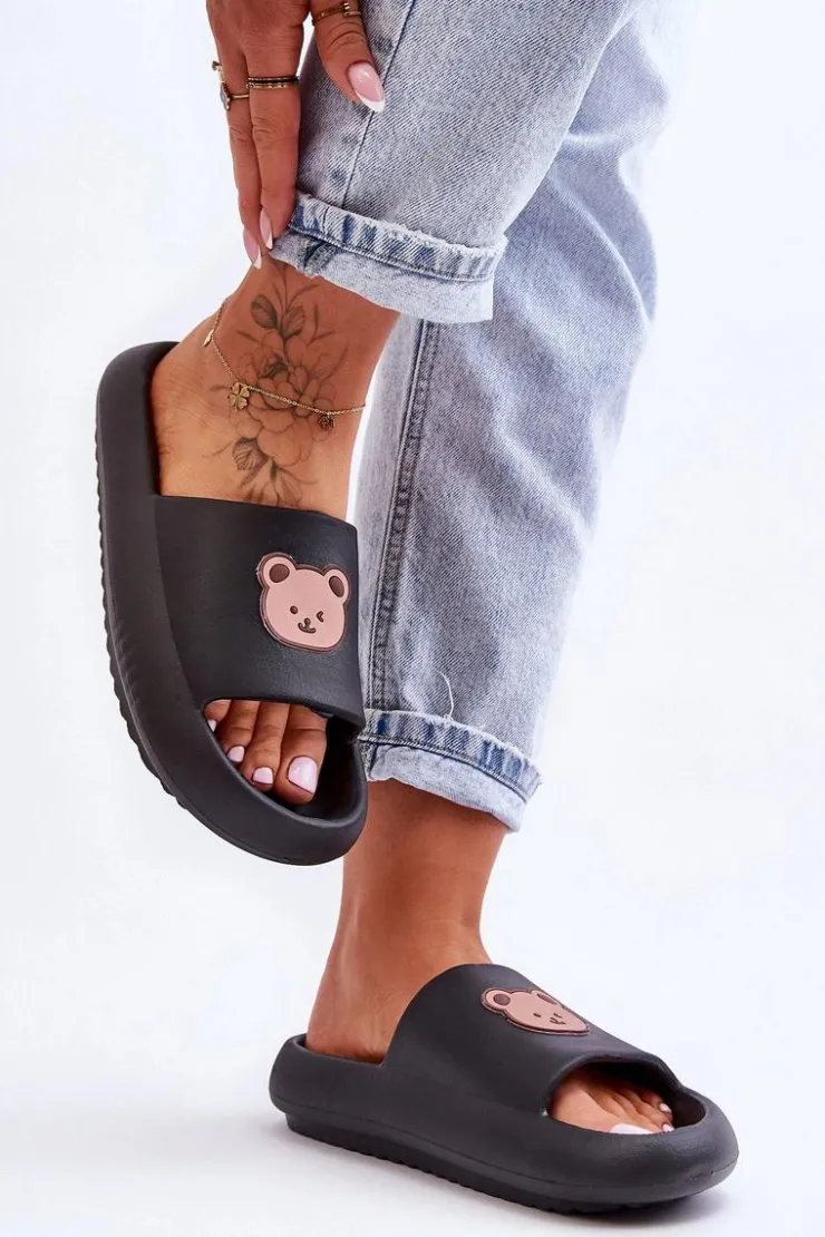 Hot Boto Lekkie Damskie Piankowe Klapki Z Misiem Czarne Lia