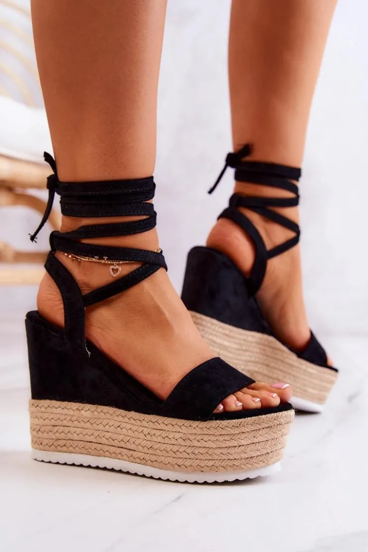 Piękne sandały na koturnie z lnianą plecionką. Bardzo lekkie i wygodne w użytkowaniu. Wiązane wokół kostki. Sandały zostały wykonane z zamszowej eko skóry. Posiadają podeszwę z tworzywa sztucznego. Wyjątkowy model wzbogaci Twoją letnią garderobę! Idealne do zwiewnych sukienek. Świetnie sprawdzą się w upalne dni. Miękka wkładka z zamszowej eko skóry zapewni Twoim stopom komfort. Przy wyborze rozmiaru prosimy sugerować się tabelą rozmiarów.