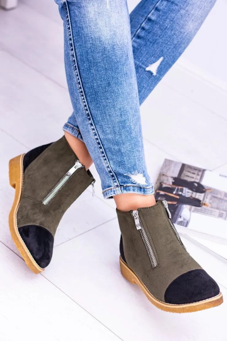 Hot Boto Lu Boo Zamszowe Oliwkowe Botki Z Suwakami Inez