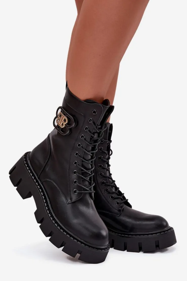 Botki workery damskie to połączenie miejskiego stylu i wygody. Model ocieplony miękkim kocem obuwniczym zapewnia ciepło w chłodniejsze dni, a połączenie sznurowania z zamkiem umożliwia idealne dopasowanie do stopy i łatwe zakładanie. Masywny obcas i platforma gwarantują stabilny krok, a subtelny ozdobny detal po boku cholewki dodaje charakteru i modowego akcentu, dzięki czemu botki świetnie sprawdzą się w codziennych stylizacjach. Przy wyborze rozmiaru prosimy sugerować się tabelą rozmiarów.