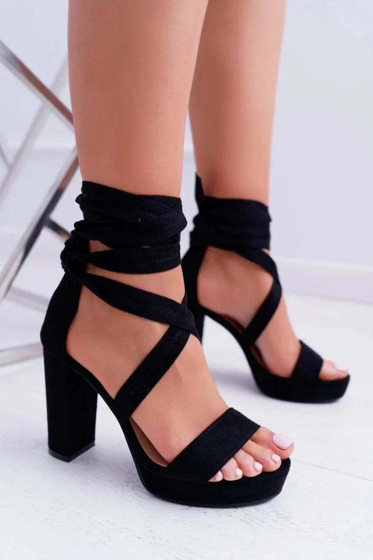 Poczuj lato już dziś i przymierz naszą najnowszą propozycje zamszowych sandałek na wysokim słupku. Zakochaj się w nich i pokaż wszystkim swoje najlepsze stylizacje. Piękny, elegancki wygląd sprawi, że poczujesz się w nich komfortowo! Wiązane wokół kostki. Platforma pod palcami ma 2,5cm grubości. Koniecznie sprawdź nasze pozostałe modele sandałek. Przy wyborze rozmiaru prosimy kierować się tabelą rozmiarów