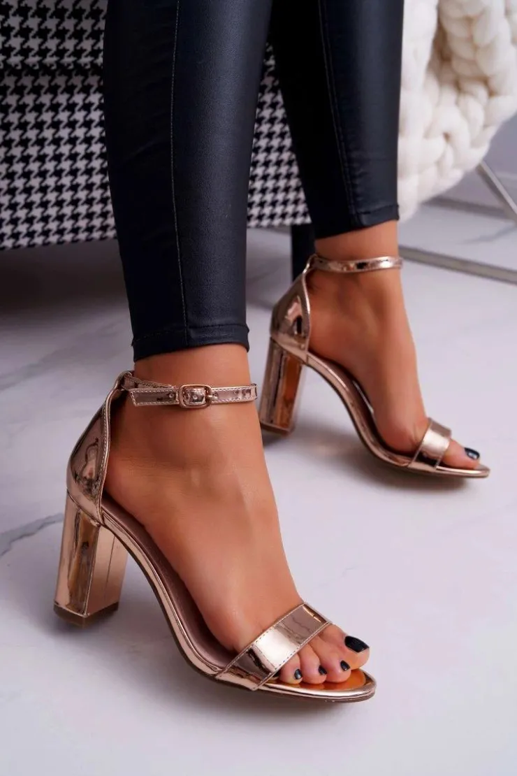 Hot Boto Sandały Damskie Na Słupku Różowe Złoto Huran