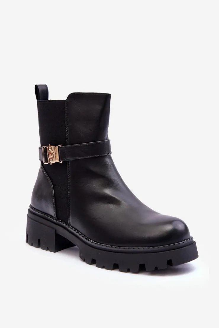 Klasyczne damskie sztyblety zostały wykonane z eko skóry. Zapinane na suwak z boku buta. Wewnątrz ocieplone kocem obuwniczym. Na cholewce znajduje się pasek z ozdobą. Model ten osadzony jest masywnej platformie i płaskim obcasie. Zapiętek jest usztywniony. Buty te świetnie sprawdzą się w sezonie wiosenno-jesiennym. Przy wyborze rozmiaru prosimy sugerować się tabelą rozmiarów.