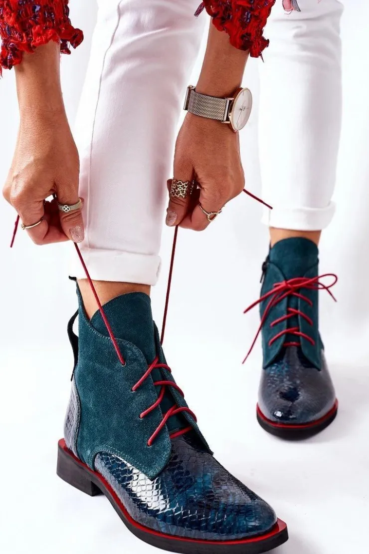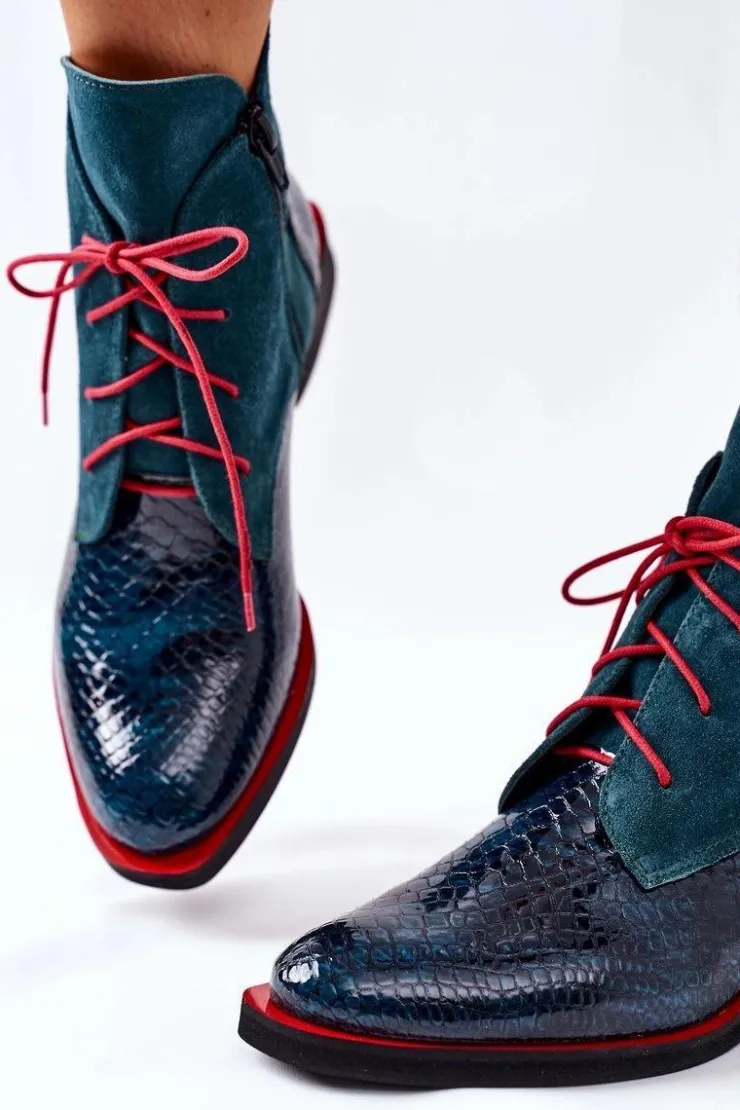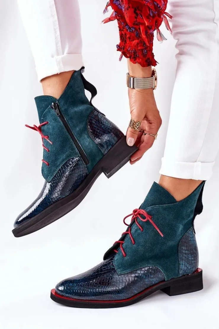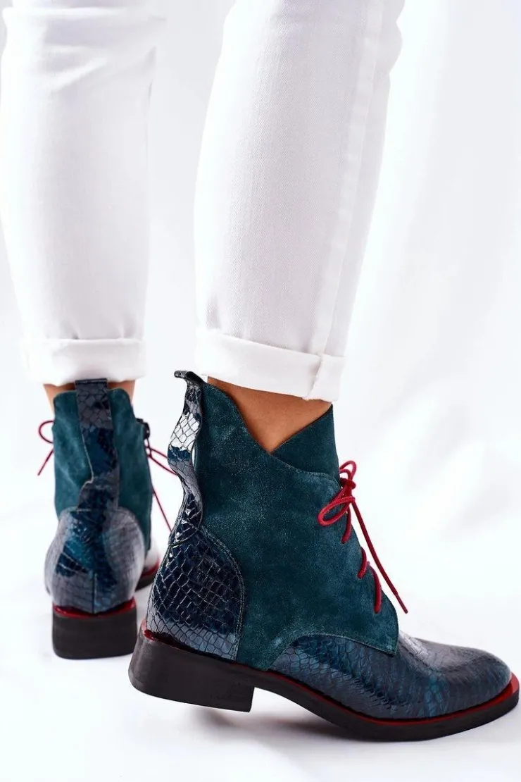 Hot Boto Skórzane Botki Z Krokodylim Wzorem Zielone Cheyenne